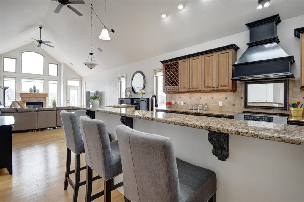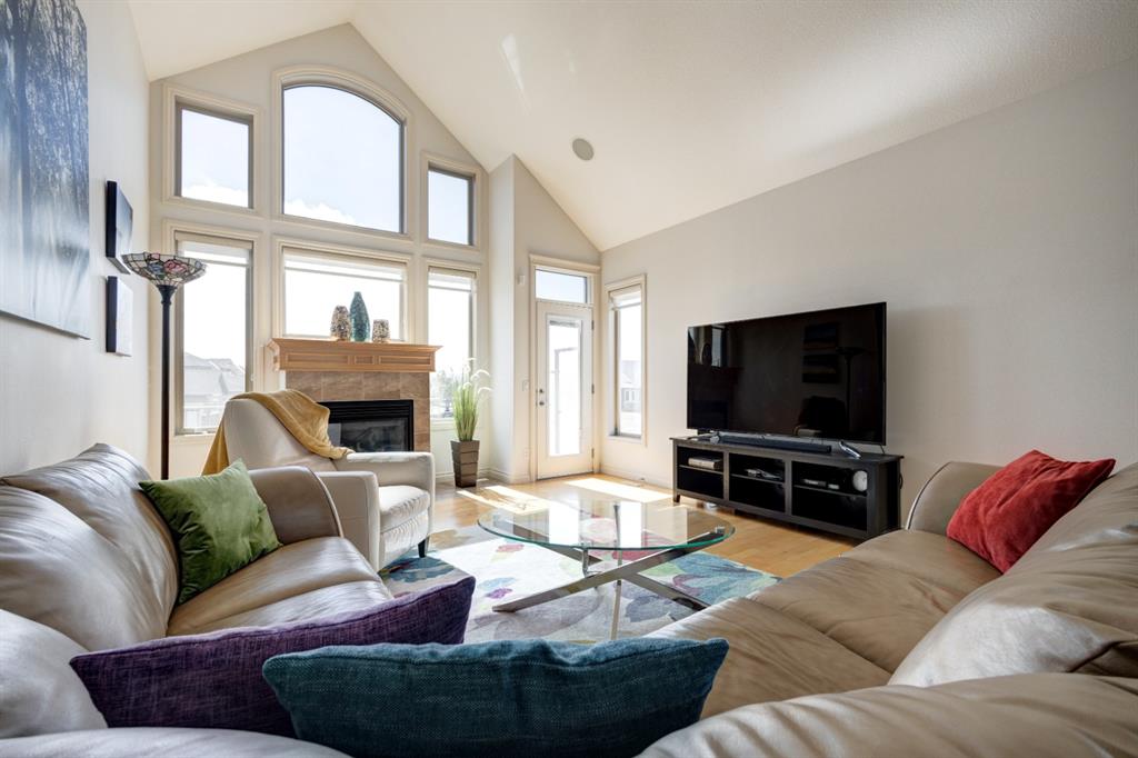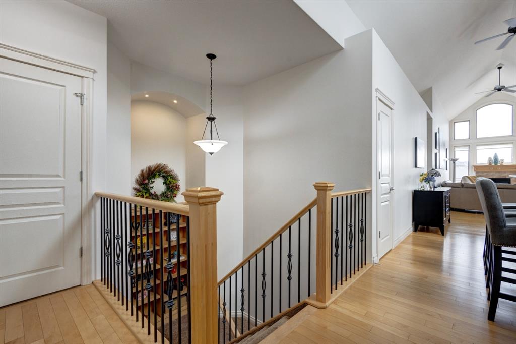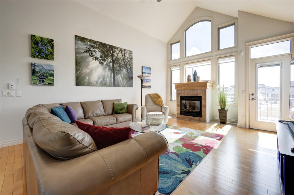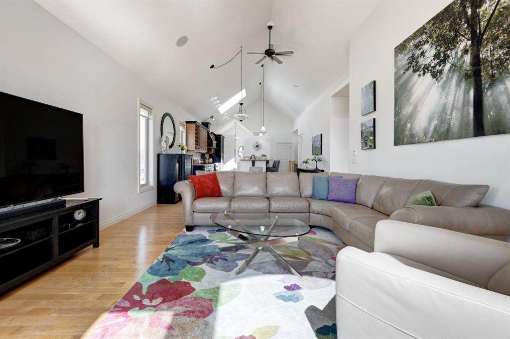 Awesome value for this newly renovated, former show home in popular Cimarron Estates! Soaring cathedral ceilings, a skylight & lots of large windows make this home light, bright & airy. The open main floor is warm & inviting with the large front foyer, hardwood & back wall of windows only interrupted by the beautiful gas fireplace. The chef’s kitchen features tons of cabinets, granite counters, breakfast bar & upgraded appliances. The spacious living & dining rooms are perfect for entertaining & tranquil living. Retreat to your large master with walk-in closet & dream ensuite with 2 sinks, soaker tub & separate shower. Your convenient mud room has the main floor laundry, sink, bench & lots of cabinets. You’ll find lots of natural light in the fully finished sunshine basement with huge windows. Enjoy the 2 bedrooms, home theatre, family room with wet bar & tons of storage. In-floor heating in the basement and garage! Recent upgrades include: new A/C unit, paint & blinds throughout, under counter lighting, kitchen sink, kitchen & master taps, laundry room cabinets, bench & cubbies, water softener, UV film on windows, shelving, 2 Phantom Screen doors, privacy glass on deck, landscaping, security system, & more. The oversized double attached garage is heated, insulated & drywalled & you’ll have a spectacular driveway that easily fits 4+ vehicles. Snow removal & yard maintenance is covered by your Home Owners’ Association agreement/fee. Welcome home! You’ll love living here!!
