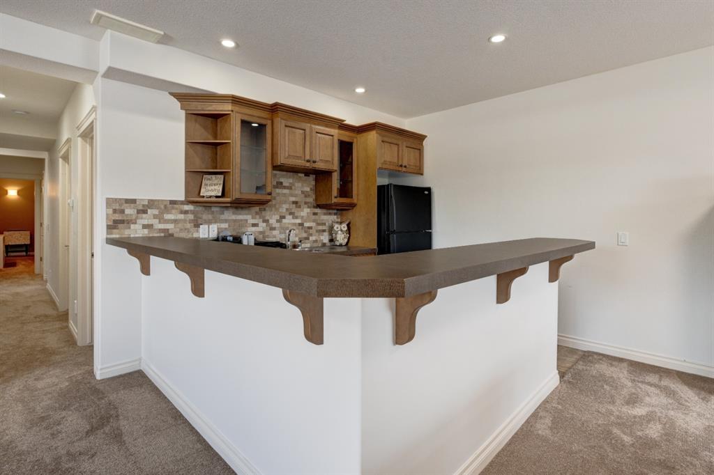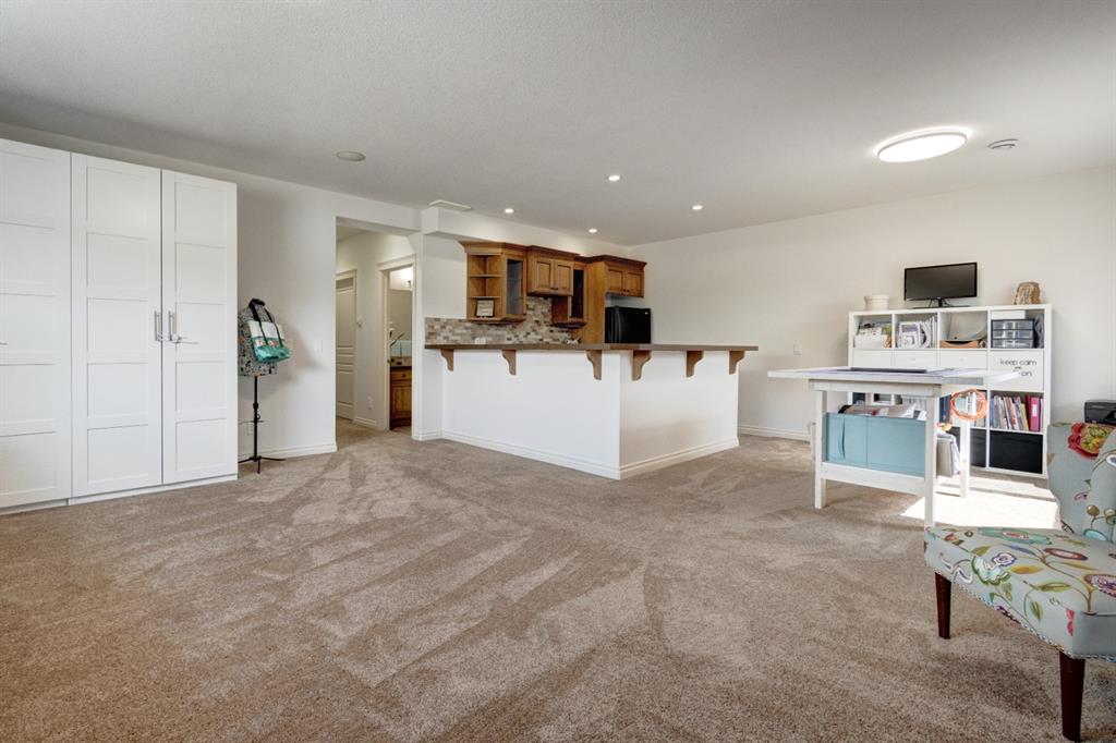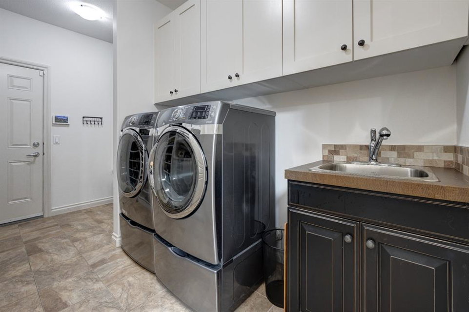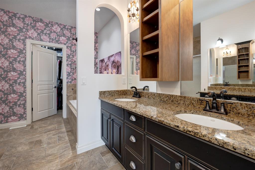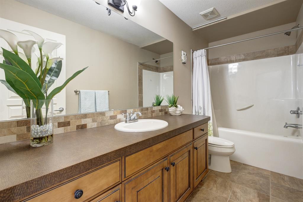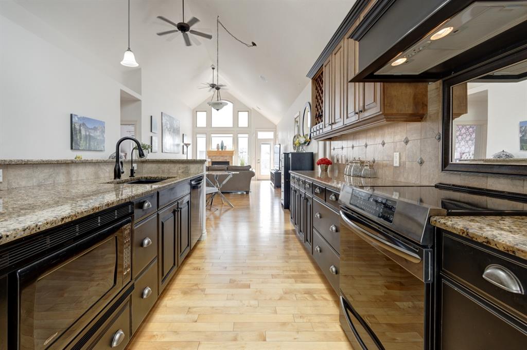 Awesome value for this newly renovated, former show home in popular Cimarron Estates! Soaring cathedral ceilings, a skylight & lots of large windows make this home light, bright & airy. The open main floor is warm & inviting with the large front foyer, hardwood & back wall of windows only interrupted by the beautiful gas fireplace. The chef’s kitchen features tons of cabinets, granite counters, breakfast bar & upgraded appliances. The spacious living & dining rooms are perfect for entertaining & tranquil living. Retreat to your large master with walk-in closet & dream ensuite with 2 sinks, soaker tub & separate shower. Your convenient mud room has the main floor laundry, sink, bench & lots of cabinets. You’ll find lots of natural light in the fully finished sunshine basement with huge windows. Enjoy the 2 bedrooms, home theatre, family room with wet bar & tons of storage. In-floor heating in the basement and garage! Recent upgrades include: new A/C unit, paint & blinds throughout, under counter lighting, kitchen sink, kitchen & master taps, laundry room cabinets, bench & cubbies, water softener, UV film on windows, shelving, 2 Phantom Screen doors, privacy glass on deck, landscaping, security system, & more. The oversized double attached garage is heated, insulated & drywalled & you’ll have a spectacular driveway that easily fits 4+ vehicles. Snow removal & yard maintenance is covered by your Home Owners’ Association agreement/fee. Welcome home! You’ll love living here!!