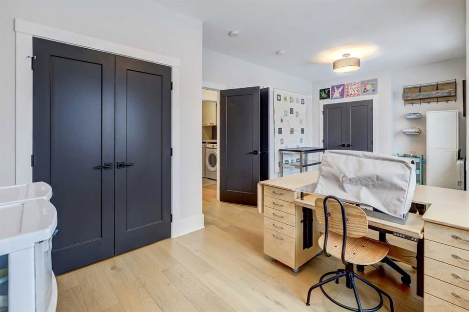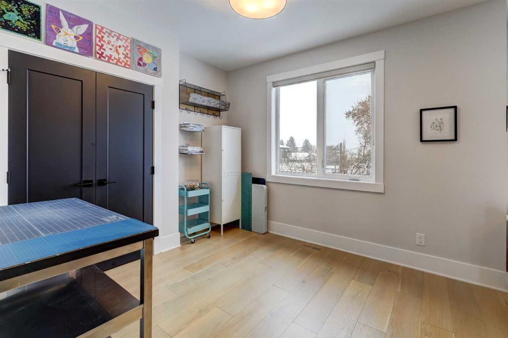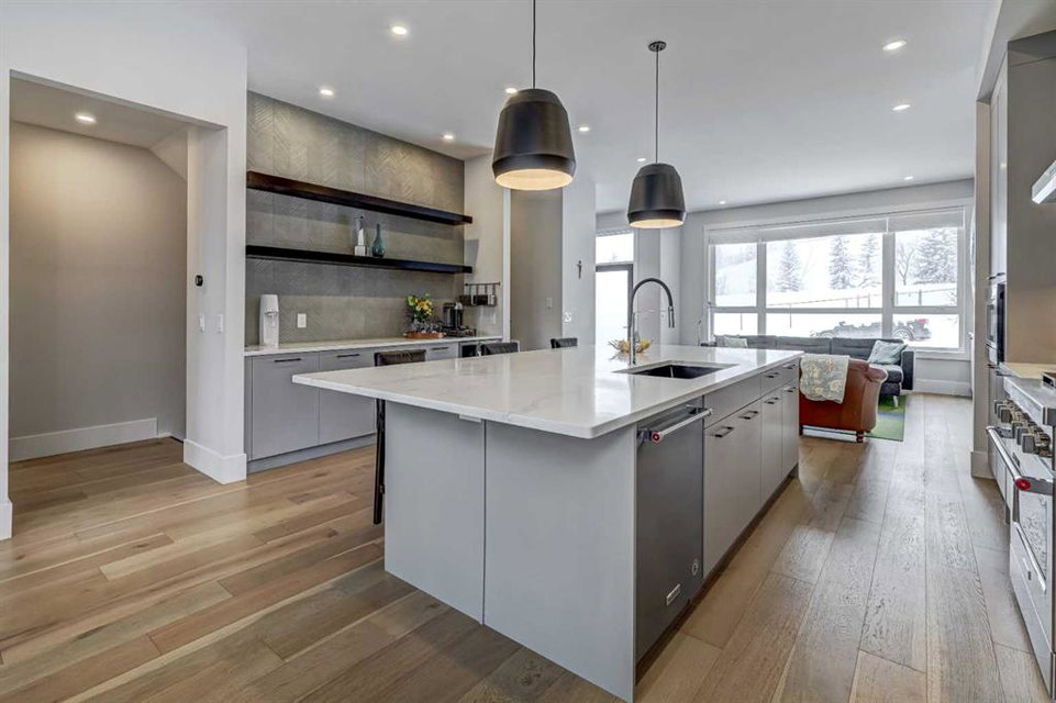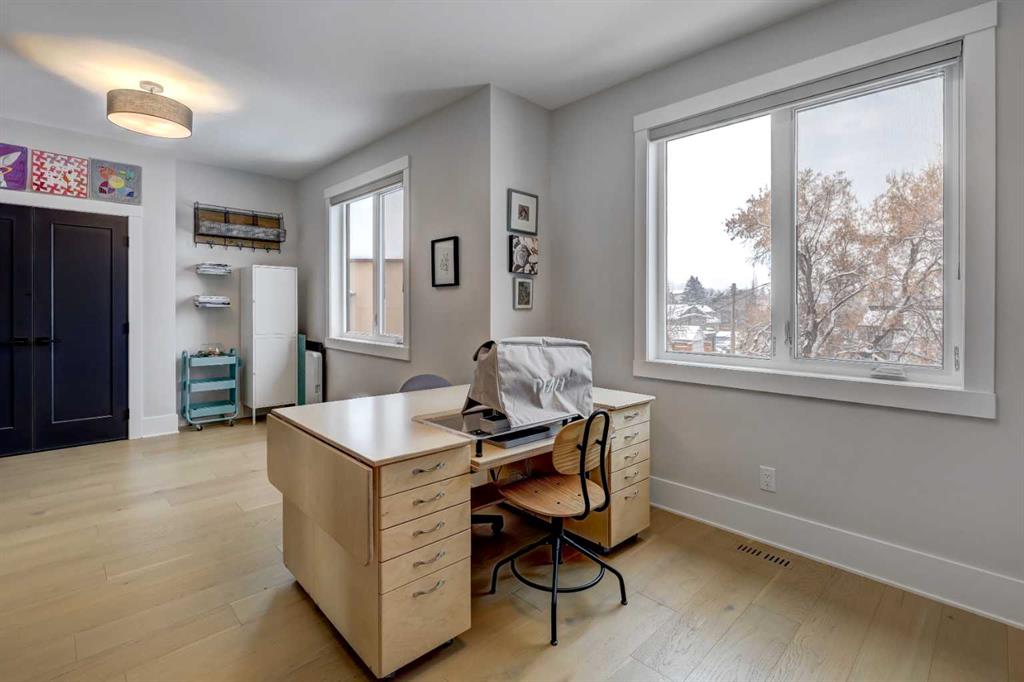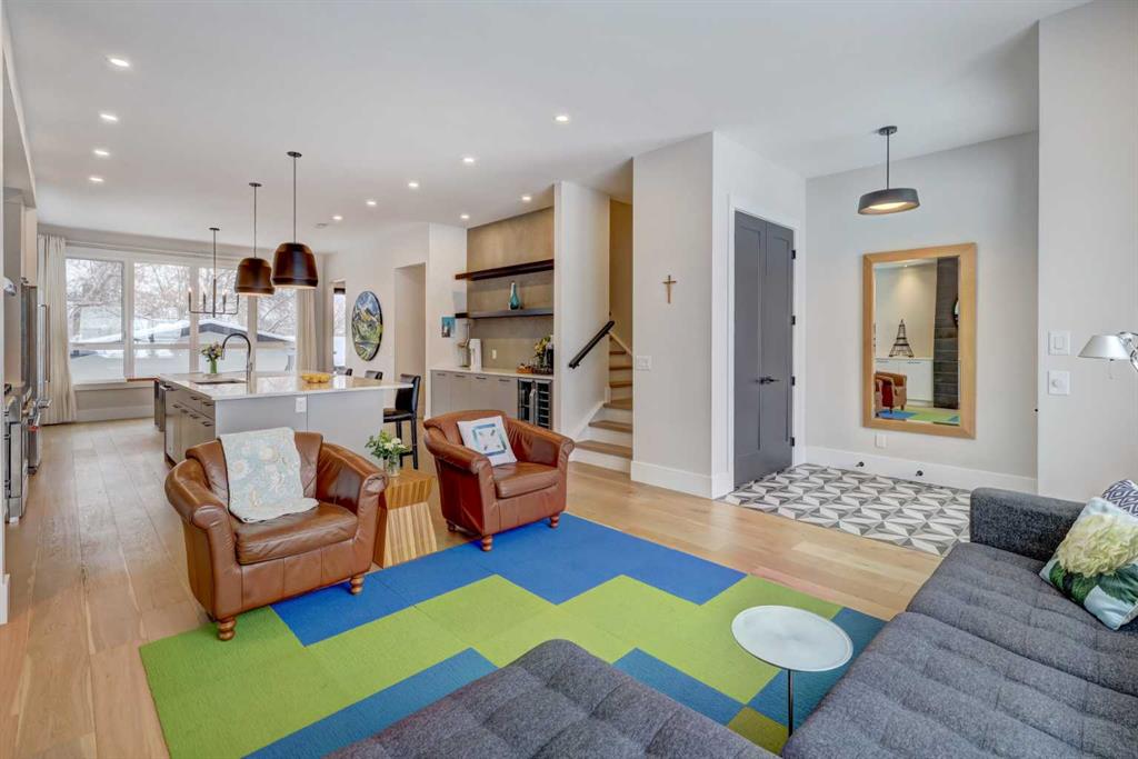 Welcome to the perfect inner-city lifestyle in this bright & open two-storey semi-detached home located in the heart of Bridgeland, just across from Schule Park & Delta West Academy. Enjoy the feeling of 10′ ceilings on the main floor, creating an airy & spacious atmosphere. The kitchen is a standout feature, boasting a huge island with extensive white quartz counters, an abundance of cabinets, upscale appliances including a 6 burner gas stove. Additionally, the kitchen includes a convenient coffee counter/butler pantry, perfect for storing and preparing beverages. The master bedroom is a retreat unto itself, with a vaulted ceiling & a beautiful ensuite that features heated floors, including the shower floor & bench, as well as a separate soaker tub for relaxation. The second bedroom/Artist’s studio can easily be turned back into 2 bedrooms up. The fully finished basement adds versatility to the home, offering a third bedroom, family room with wet bar & cool wine racks, a 3-piece bathroom & lots of storage. Outside, the south-facing backyard boasts easy maintenance-free landscaping, providing a perfect space for outdoor enjoyment. Extra features of this home include air conditioning, extra soundproofing between units, white oak hardwood on the main & upper floors, skylights, UV film on South-facing windows, $20K in Hunter Douglas blinds, & a wider lot compared to typical semi-detached homes. Walk to work downtown & all amenities on 1st Ave – Made By Marcus, Starbucks, restaurants, boutiques & more! Don’t miss out on the opportunity to own this charming home in a desirable location
