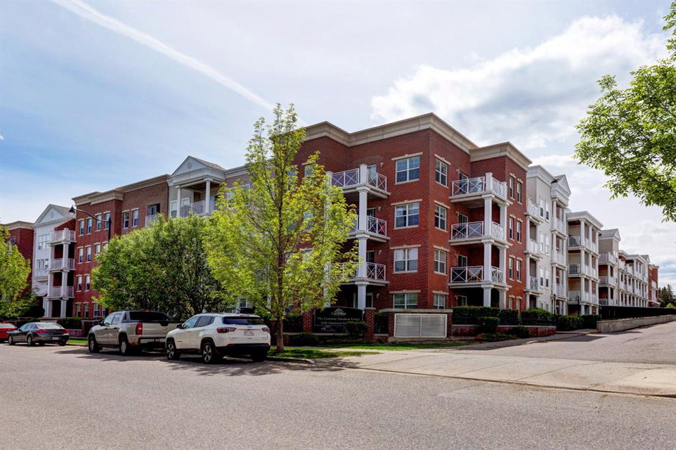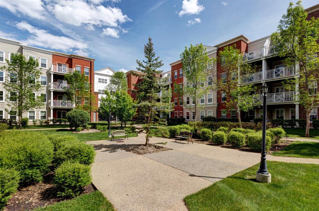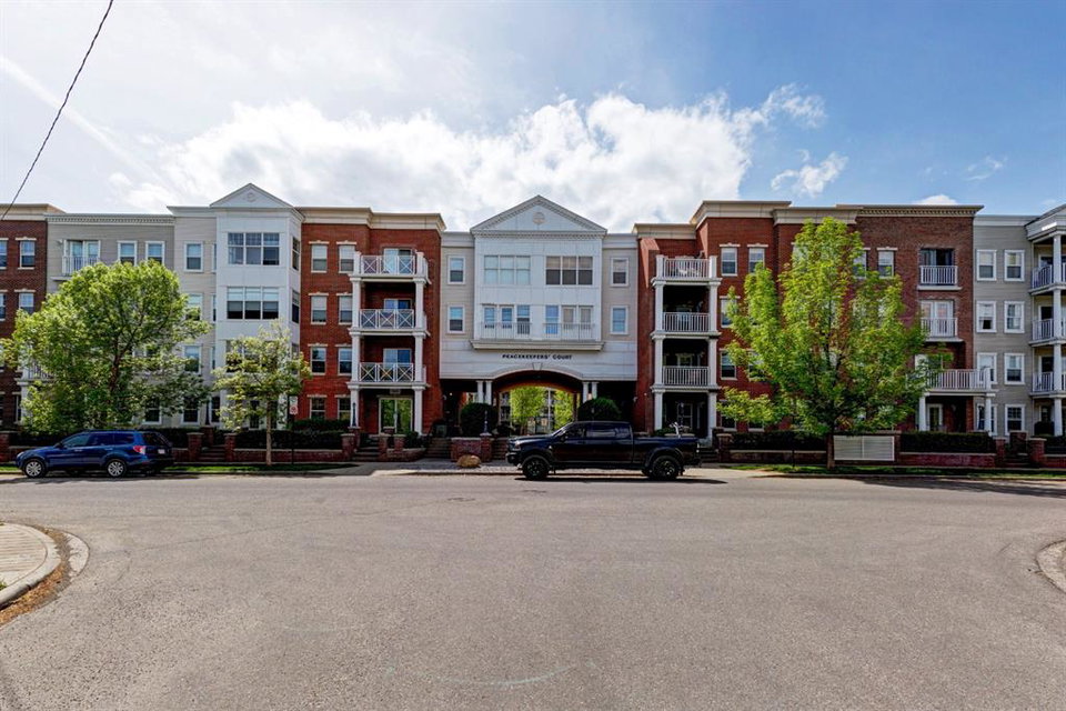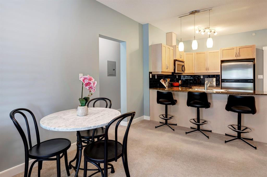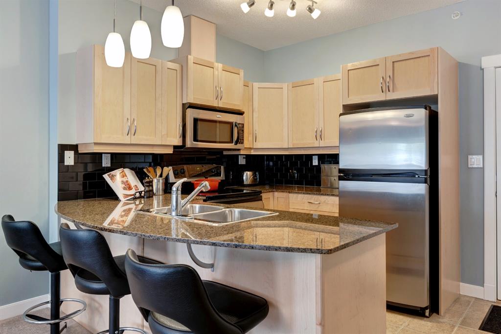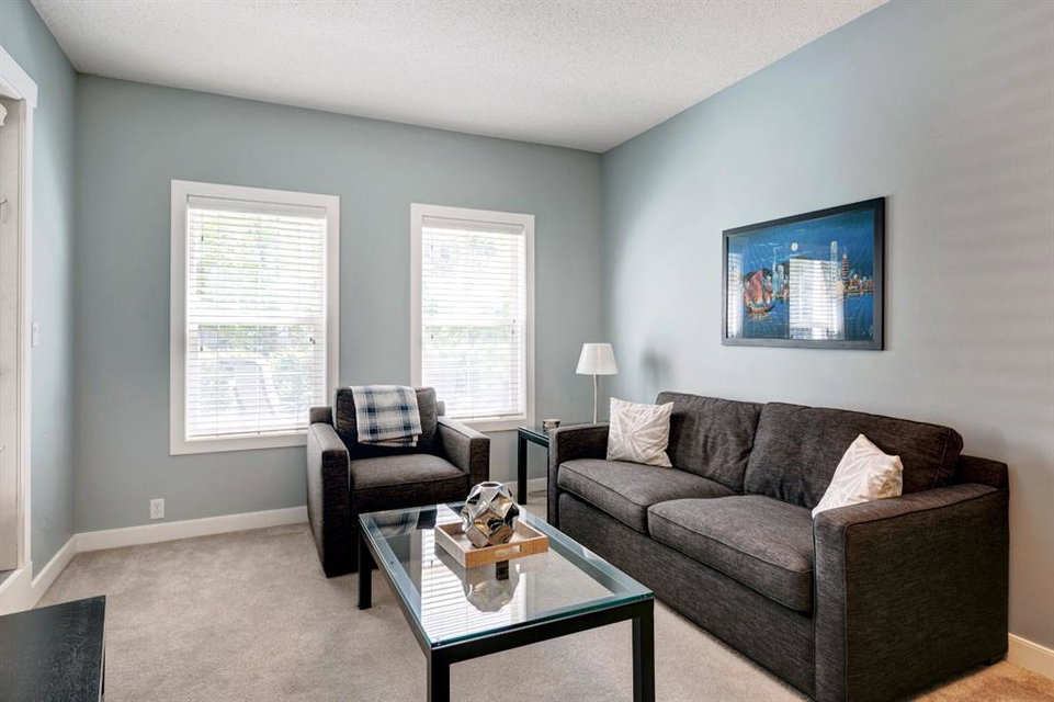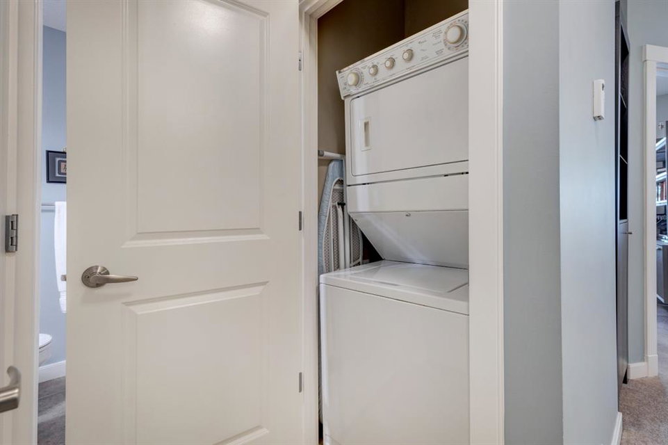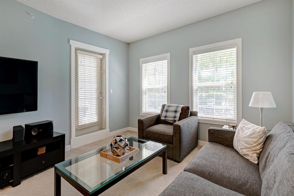 Welcome to the perfect inner city home in popular Garrison Green! Entertain family & friends on your huge patio that looks South to the beautifully treed inner green courtyard. You’ll enjoy both covered & uncovered outdoor space with a hedge for privacy. With 2 bedrooms, 2 full baths & a den, you’ll have lots of room to live and also work from home. The bright & open plan boasts a great kitchen with lots of granite counter space, curved eating bar, maple cabinets & under cabinet lighting. The good-sized master bedroom has a walk-through closet & full ensuite with 2 sinks, granite counter & shower. Features include: TWO UNDERGROUND PARKING STALLS are titled & side by side, 9’ ceilings & Gas BBQ hookup on patio, condo fee includes all utilities including electricity! Recent updates include: Painted walls, trim & baseboards, some lights, bathroom faucets, shelves in the den & ceiling fan. The complex roofing has recently been redone along with security upgrades. This original owner confirms that there have been no pets or smoking ever in this home. You’ll love this peaceful location yet you’ll still have easy access to major routes & walking distance to MRU, coffee shops, restaurants & more! Welcome home!!!