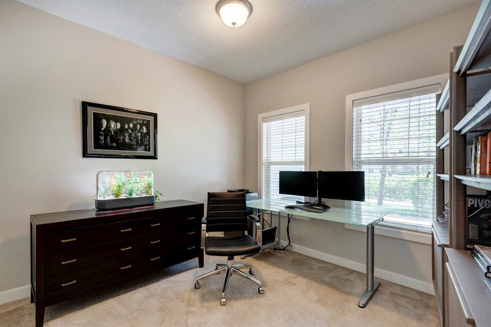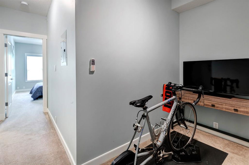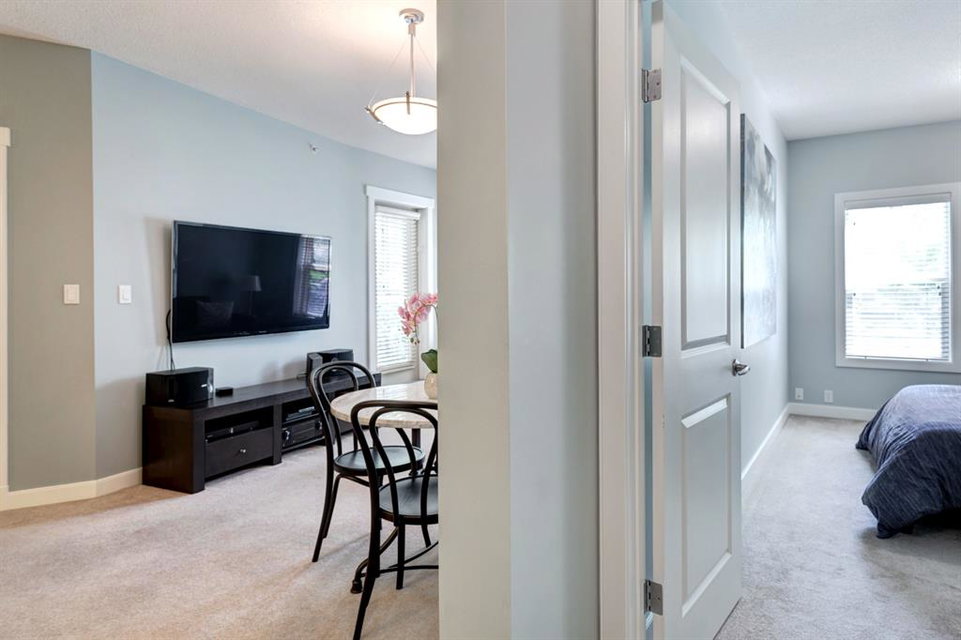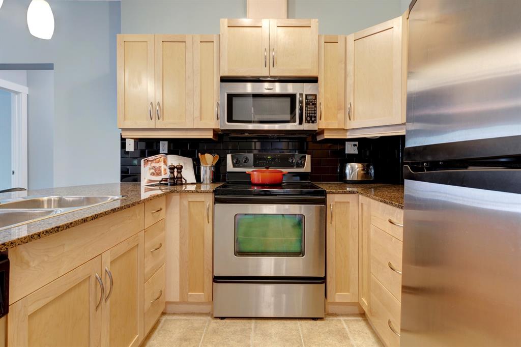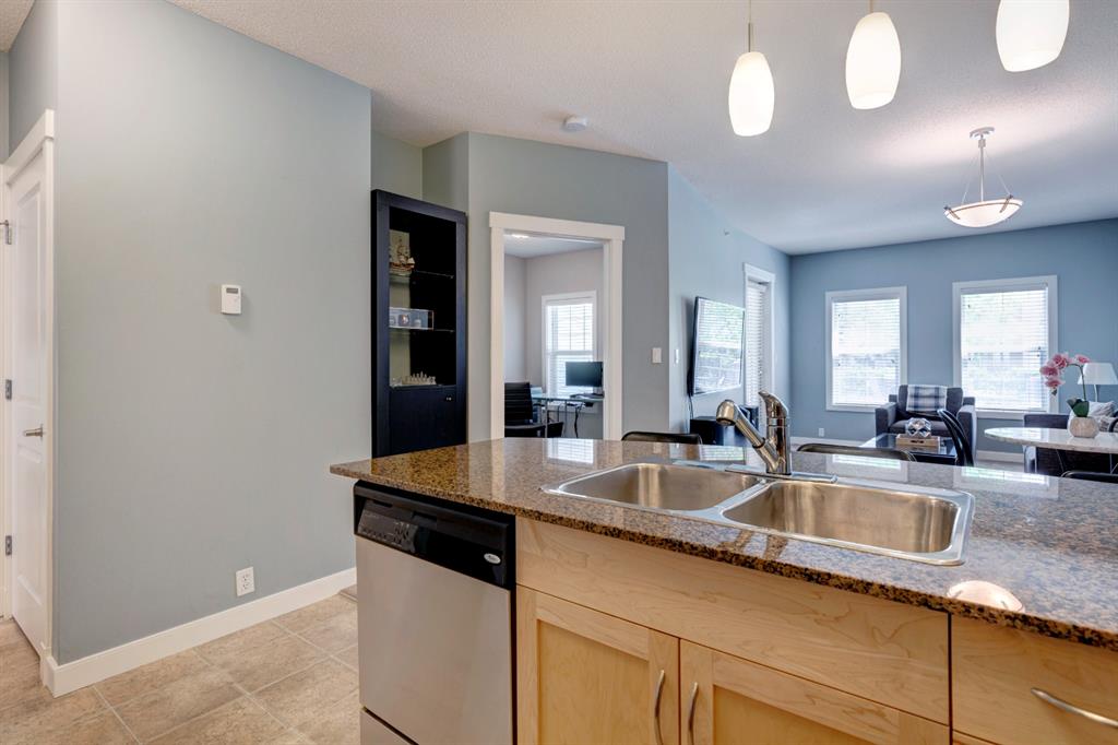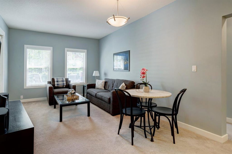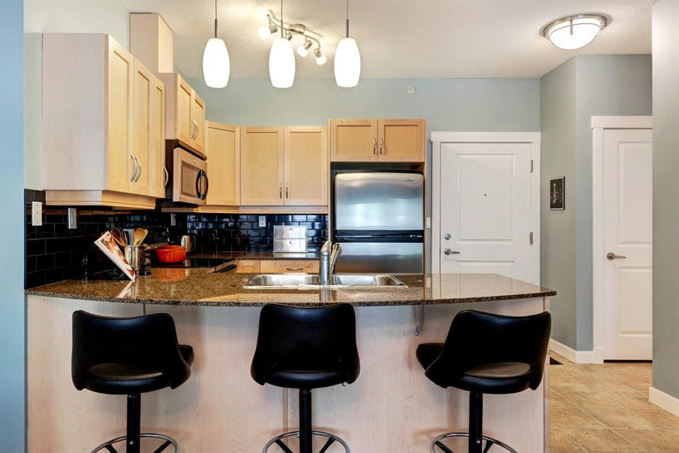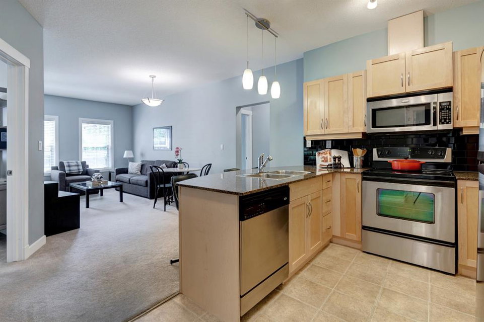 Welcome to the perfect inner city home in popular Garrison Green! Entertain family & friends on your huge patio that looks South to the beautifully treed inner green courtyard. You’ll enjoy both covered & uncovered outdoor space with a hedge for privacy. With 2 bedrooms, 2 full baths & a den, you’ll have lots of room to live and also work from home. The bright & open plan boasts a great kitchen with lots of granite counter space, curved eating bar, maple cabinets & under cabinet lighting. The good-sized master bedroom has a walk-through closet & full ensuite with 2 sinks, granite counter & shower. Features include: TWO UNDERGROUND PARKING STALLS are titled & side by side, 9’ ceilings & Gas BBQ hookup on patio, condo fee includes all utilities including electricity! Recent updates include: Painted walls, trim & baseboards, some lights, bathroom faucets, shelves in the den & ceiling fan. The complex roofing has recently been redone along with security upgrades. This original owner confirms that there have been no pets or smoking ever in this home. You’ll love this peaceful location yet you’ll still have easy access to major routes & walking distance to MRU, coffee shops, restaurants & more! Welcome home!!!