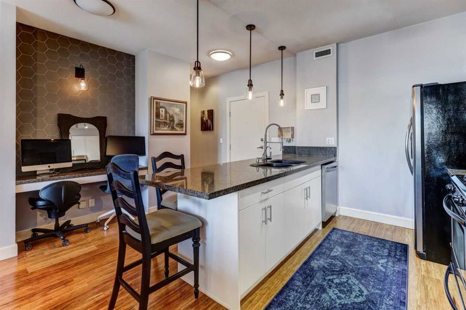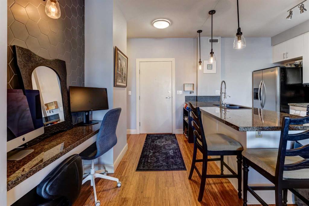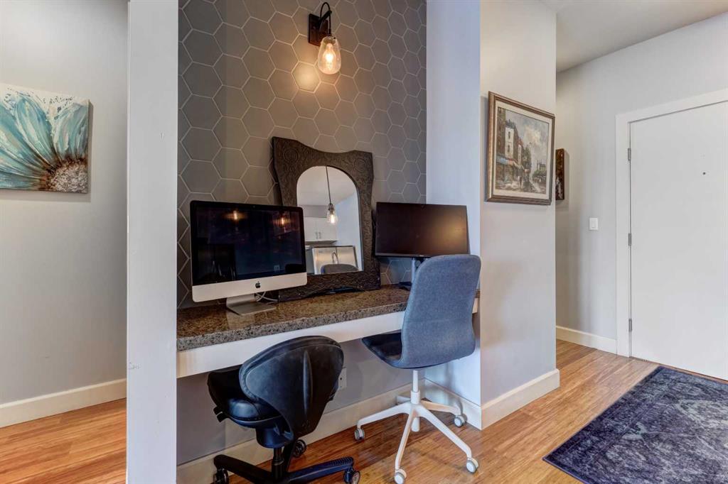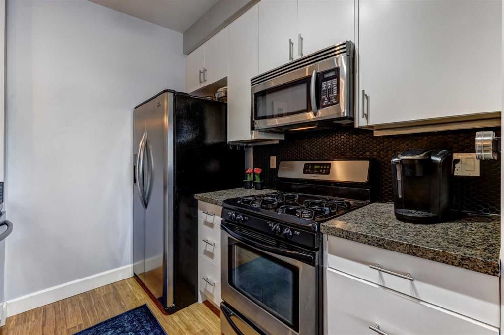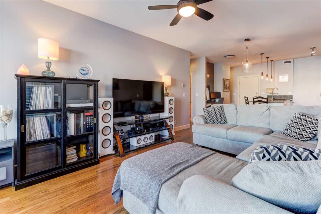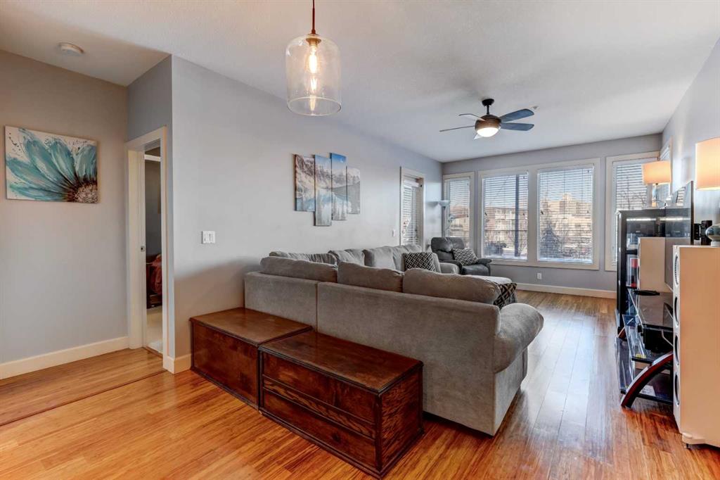 Welcome to the best inner-city location in the heart of Kensington, just steps to all amenities! This 2-bedroom, 2-bathroom unit in Hillhurst offers the perfect blend of convenience & comfort. Walk to work & enjoy the Bow River pathways. The open & bright layout features bamboo hardwood throughout the main living areas, complemented by carpet in the bedrooms. The kitchen is a highlight, featuring a large peninsula island, white cabinets, & granite counters. Imagine dinner parties & game nights with family & friends in the large living/dining room. The spacious master bedroom boasts a walk-through closet leading to the ensuite with huge shower & 2 sinks while the second bedroom has a convenient walk-in closet. Relax on the good-sized balcony overlooking a green space & playground. Additional features include in-suite laundry/storage room & air conditioning for added comfort. One titled parking stall is included. Building amenities include a gym, underground parking, visitor parking, & a bike room. Don’t miss the opportunity to explore this fantastic property. Contact us today for a viewing!