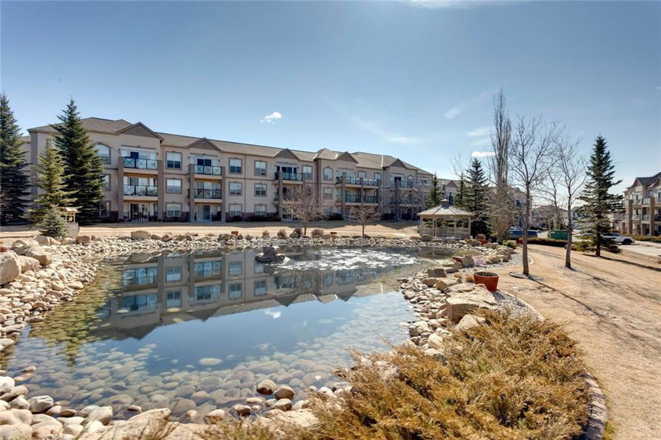 This one is a knockout & will have you seeing double! Extra-large 2 bed 2 bath corner unit with 2 patios, UG parking, great amenities & in NW Calgary’s only lake community…yes please! Entertainer’s dream kitchen with an abundance of cabinets & counters, walk-in pantry, SS appliances & an island with breakfast bar. Super bright living space that also boasts a fireplace & sliding glass doors to a private patio. Perfect for your BBQ & outdoor dining. The master suite will spoil you rotten. Your king-sized bed will need more furniture friends in this space & the walk-in closet is huge! The ensuite is also large with abundant counter space & a linen closet. Top this suite off with sliding glass doors to another patio made for morning coffee or evening cocktail. The 2nd bedroom is spacious & steps to the 2nd full bath. Very well run complex that features: a full gym, sauna, rec room, beautiful green space, pond, gazebo, fountain and lots of visitor parking. Don’t miss this one…call your favourite Realtor today! Located in one of Calgary’s lake communities this is only steps away from transit, the lake and close to shopping and restaurants. Lots of pathways and parks to enjoy.