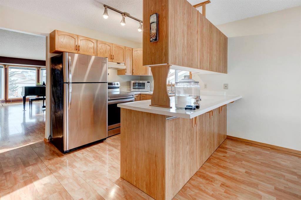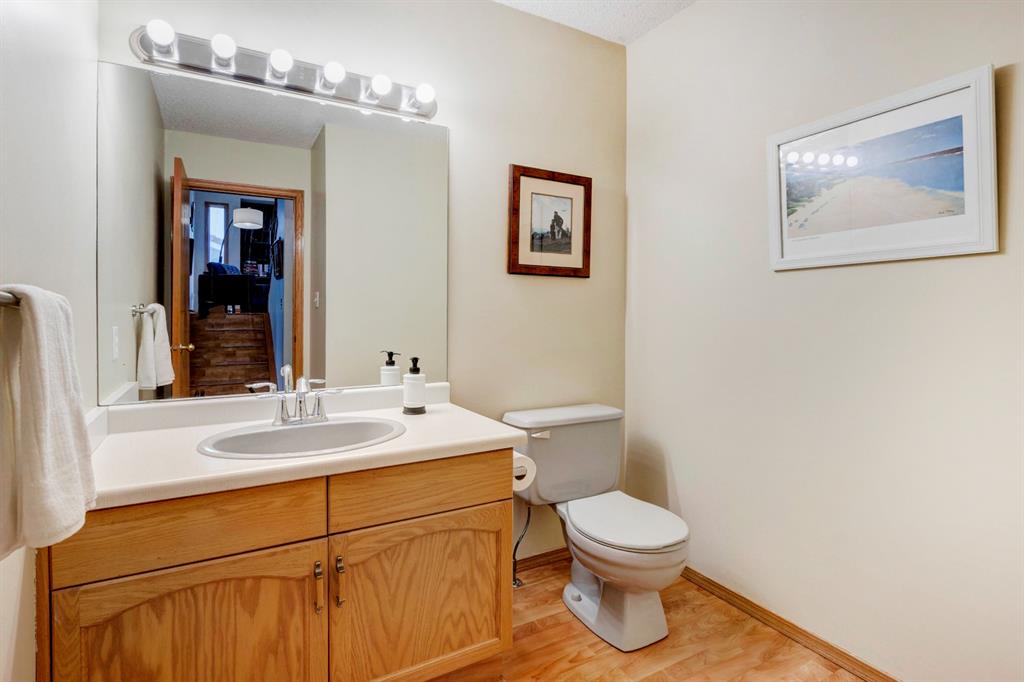 Awesome value for this fully finished family home in popular Hawkwood! You’ll love the very bright main floor with a vaulted ceiling in the open living & dining rooms. The kitchen boasts lots of cabinets & counters, a large eating area that opens to the upper, composite deck & it is also open to the 3rd level family room. Upstairs, you’ll find 3 bedrooms including a spacious master with full ensuite. The 3rd level family room & 2-pce bath are perfect for family movie nights & to have friends over for the big game. Your party can extend to the paver patio through the patio doors off of that level. The fully finished 4th level has a large games room/4th bedroom, laundry & huge crawl space. Laminate flooring throughout this home will help anyone with allergies! Recent upgrades: new stainless steel fridge, stove & dishwasher, some new Lux windows in the living room bay & the front of the house, painting & more! Imagine family BBQs & the kids playing in the huge West back yard! You’ll just have to decide on flowers or veggies to grow in your South facing garden. A new outdoor recreation facility is currently being built in Hawkwood. Set to open up in the fall, this exciting new outdoor facility will include tennis courts, outdoor rink, basketball court, zip-line, play area, fire pits, picnic area & pathways. Walk or a short drive to schools, Crowfoot Town Centre & the LRT. You’ll love living here!!