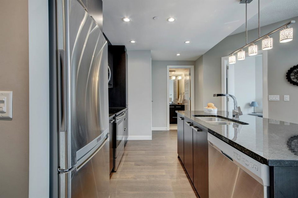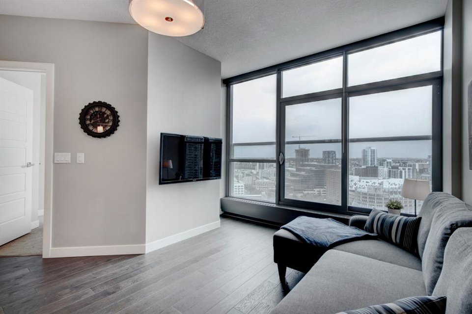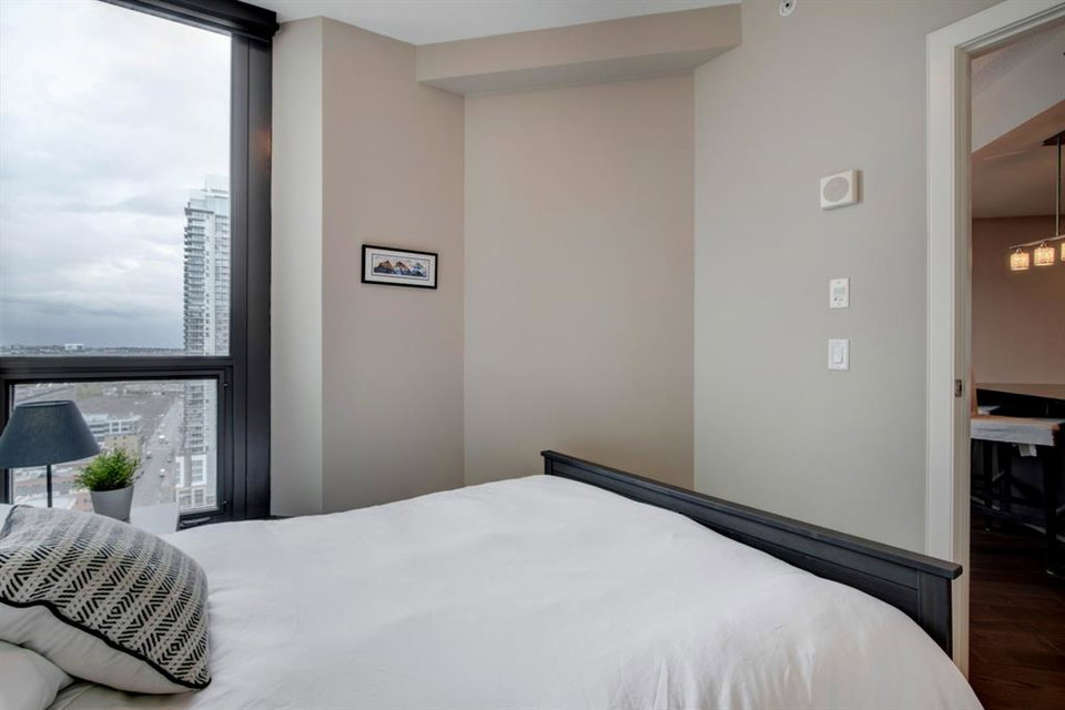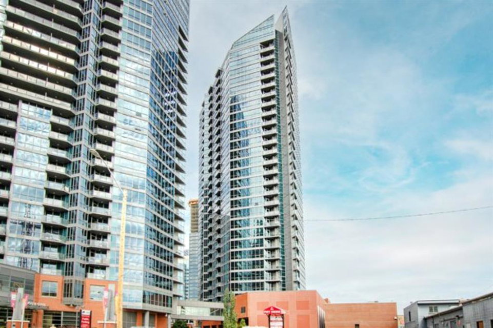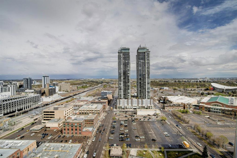 Welcome to the perfect inner city home! Walk to work, coffee shops, restaurants, parks, Stampede Grounds, Flames games & Village Ice Cream! Perched high on the 23rd floor, you’ll enjoy views of the Bow River, Fort Calgary, Studio Bell & the Central Library. You’ll be right in the midst of everything fun!!! This efficient floor plan boasts an island kitchen with stainless steel appliances, lots of cabinets, granite counters & a breakfast bar. Lots of room in the living room to entertain or relax as you watch the view through your floor to ceiling wall of windows. The bedroom has a walk-in closet & you’ll love have in-suite laundry. Retreat to your deep soaker tub after a tough day at work! Everything is on-site with these amazing amenities: gym, hot tub, social room, huge green space patio & direct access to Sunterra grocery store & liquor store. You’ll love living here!!!