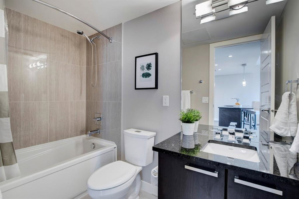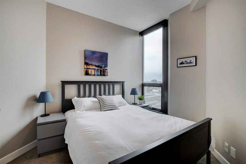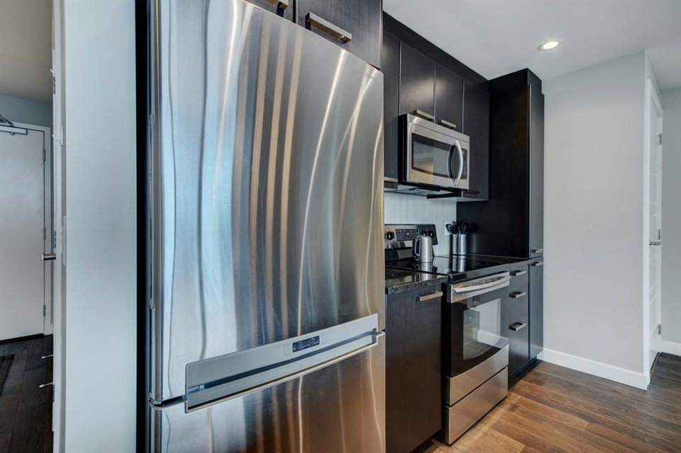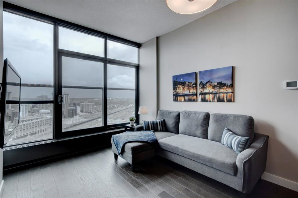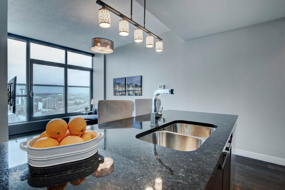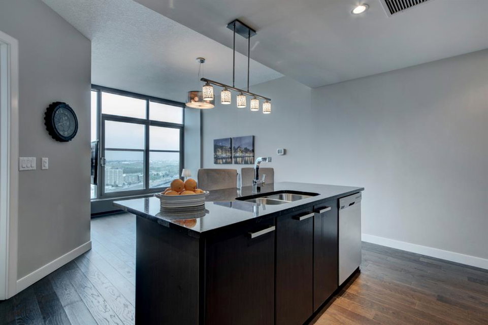 Welcome to the perfect inner city home! Walk to work, coffee shops, restaurants, parks, Stampede Grounds, Flames games & Village Ice Cream! Perched high on the 23rd floor, you’ll enjoy views of the Bow River, Fort Calgary, Studio Bell & the Central Library. You’ll be right in the midst of everything fun!!! This efficient floor plan boasts an island kitchen with stainless steel appliances, lots of cabinets, granite counters & a breakfast bar. Lots of room in the living room to entertain or relax as you watch the view through your floor to ceiling wall of windows. The bedroom has a walk-in closet & you’ll love have in-suite laundry. Retreat to your deep soaker tub after a tough day at work! Everything is on-site with these amazing amenities: gym, hot tub, social room, huge green space patio & direct access to Sunterra grocery store & liquor store. You’ll love living here!!!