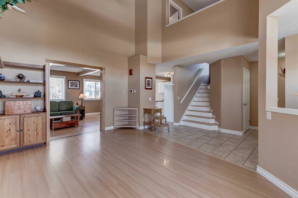 This family home is conveniently located across the street from Samuel W. Shaw School so you can watch your kids walk to school, making it ideal for busy families. The bright & open layout is filled with natural light & has plenty of space for everyone to enjoy. The kitchen features white cabinetry with laminate counters, providing a clean & functional space for meal preparation. The formal dining room allows for flexibility when hosting gatherings & family dinners as you can expand into the large living room which boasts a vaulted ceiling. The welcoming atmosphere is perfect for relaxing or entertaining. Upstairs, you’ll find maple hardwood flooring, a huge master bedroom with a large walk-in closet & ensuite, along with two additional good-sized bedrooms. While the basement is partly finished with framing, studs, & electrical work (no permits), it offers great potential for customization to suit your needs. The garage is insulated & drywalled, providing added convenience & storage space. Updates to the home include a new hot water tank (2023), painting, front windows replaced in 2008 (Pella Windows & Doors), updated toilets, tiles, & cabinets in the bathrooms (2012 & 2016), as well as new front & back doors (Pella Windows & Doors), some plumbing updates, & a new garage overhead door in 2022, Lennox A/C, Lennox high efficiency furnace (95%), heat recovery ventilator, touch screen programmable thermostat (2014). Enjoy your morning coffee on the spacious front veranda overlooking paver stone landscaping & sprinkler system. The spacious southwest-facing backyard is fully fenced, offering a private & secure space for the kids to play. You’ll be close to all amenities – schools including Father Doucet Catholic School, grocery stores, restaurants, banks, coffee shops, public library, C-train stations, bus routes, YMCA & so much more! You’ll love living here!