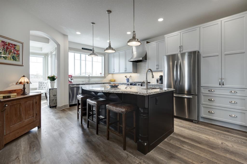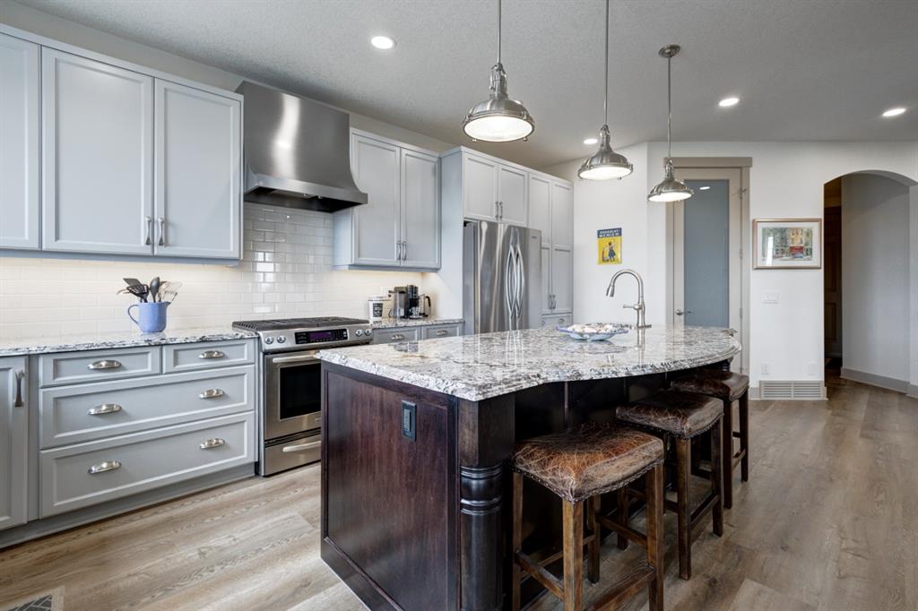 Welcome to this gorgeous custom, executive home at the top of Winsport/COP ski hill on a huge .27 of an acre pie lot! With over $200,000 in recent updates, this fully finished walkout 2 storey shows like new! From the grand, 2 storey entry to all of the special touches throughout this home, the open plan is perfect for entertaining & family living. Imagine preparing gourmet meals for family & friends in the chef’s kitchen with over-sized island, granite counters, upscale appliances, eating bar, & huge pantry. Upstairs you’ll find 4 spacious bedrooms including a huge master with his/hers walk-in closets & a barn door to the revamped, dream ensuite. Picture relaxing in the sitting area with a good book while you watch the mountain view! The fully finished walkout basement boasts family & games rooms, den area, tons of storage & an attached chalet with gas fireplace & wall mounted TV. Upgrades include: LVP throughout main floor, professionally painted kitchen cabinets, renovated ensuite, full interior paint, lights, chimney hood fan, some windows, garage heater added, beautiful chalet below the main floor balcony, 2 A/C units & more. Backing South onto green space, pond & walking paths & you’ll enjoy those beautiful mountain views. Walk to all amenities: coffee, restaurants, gyms, etc. and you’ll have easy access out to major routes. You’ll love living here!!