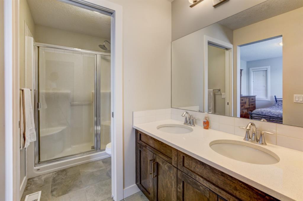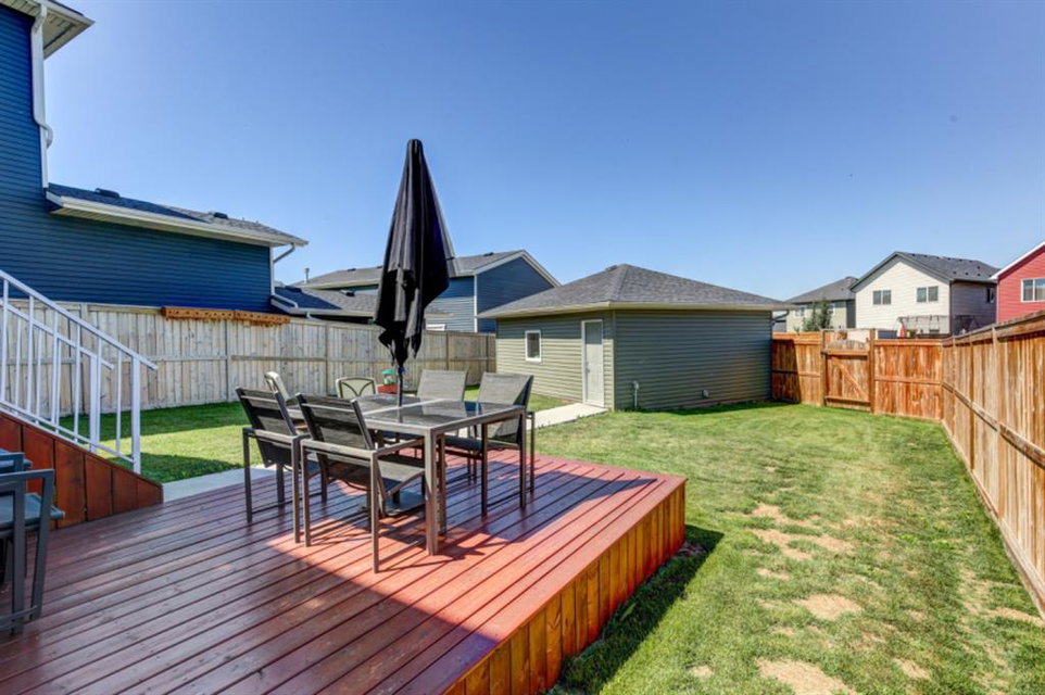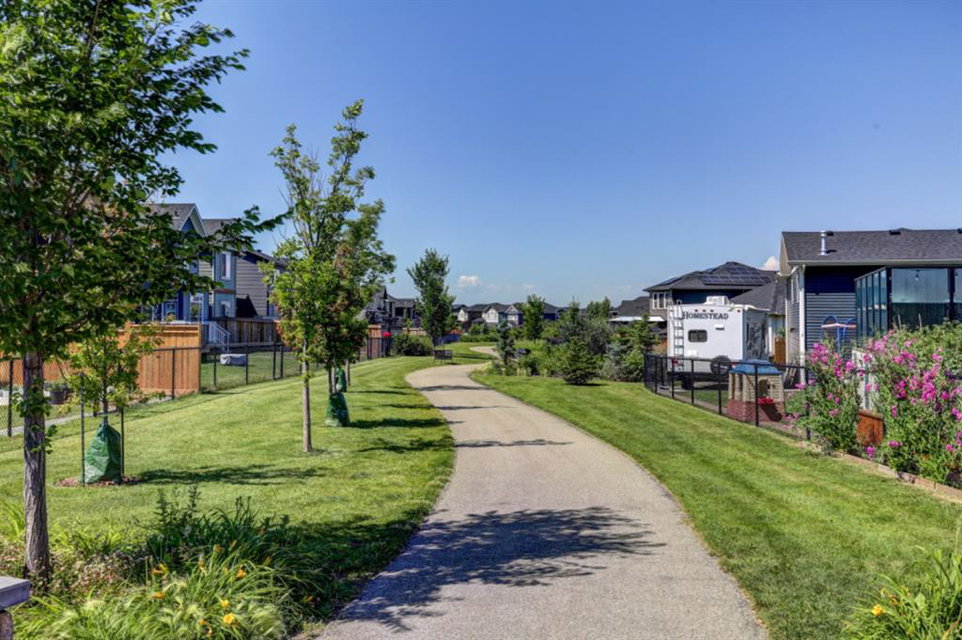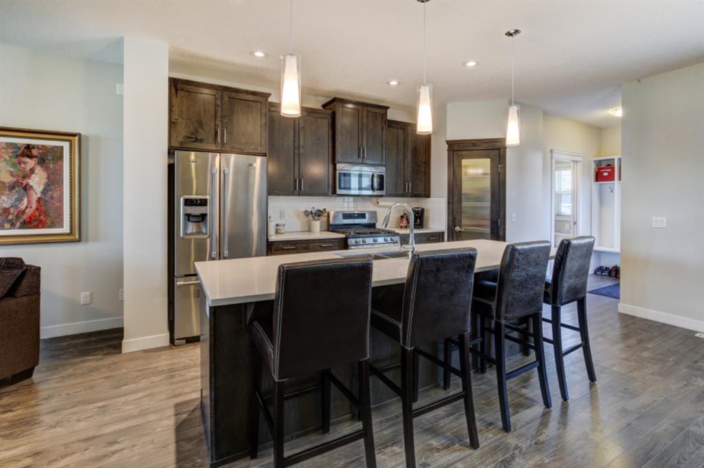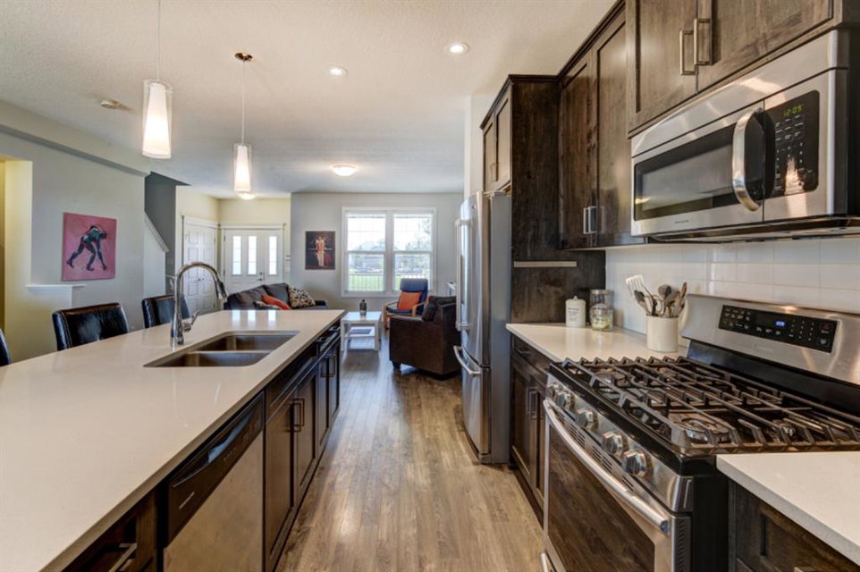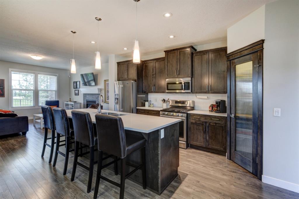 Welcome home to this former show home fronting onto a peaceful green space and just 2 doors away from a linear green space with bike/walking path. Imagine savouring your morning coffee on the full front verandah! Super bright & open, the main floor features spacious living & dining areas & an upgraded island kitchen with white quartz, 5 burner gas stove, 9’ island, corner pantry & breakfast bar. There is a cubby for everyone in the back mud room! Upstairs, you’ll find a handy laundry & 3 bedrooms including a large master with full ensuite & walk-in closet. The builder-finished basement has a 4th bedroom, full bath, lots of storage & a great family room with wet bar. Perfect for watching the big game with family & friends! Family BBQs will be fun in your West back yard with tiered decks, fire pit patio, lots of room for the kids to play & an over-sized double detached garage. Enjoy cool comfort with the central air conditioning! Quiet location yet still close to all amenities. You’ll love living here!!