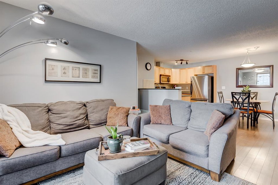 Amazing value for this open & bright condo apartment conveniently located in popular Bridlewood with easy access to Stoney Trail & all amenities! With 2 bedrooms, 2 full baths & a den, this home is perfect for living, entertaining & working from home. With lots of cabinets & counter space in the kitchen you’ll be able to prepare special meals to serve in your spacious dining room. It will be easy to get ready in the morning with your walk-through closet leading to your full ensuite. On the opposite side of the home is the second bedroom with its own full bath as well. Features include: laminate & tile flooring throughout, fresh paint, stainless steel appliances, & in-suite laundry. Imagine BBQs with family & friends on your patio bordered with trees & shrubs! You’ll love the titled underground parking stall & take over the Sellers’ rental of a second one for $50/mth. Even better, the affordable condo fees in this pet-friendly complex include ALL UTILITIES! Walk to shopping, coffee shops & parks & you’ll have a quick drive to Spruce Meadows, Shawnessy Shopping Centre, Fish Creek Park and Somerset-Bridlewood LRT. Welcome home to care-free living in a wonderful location!!!