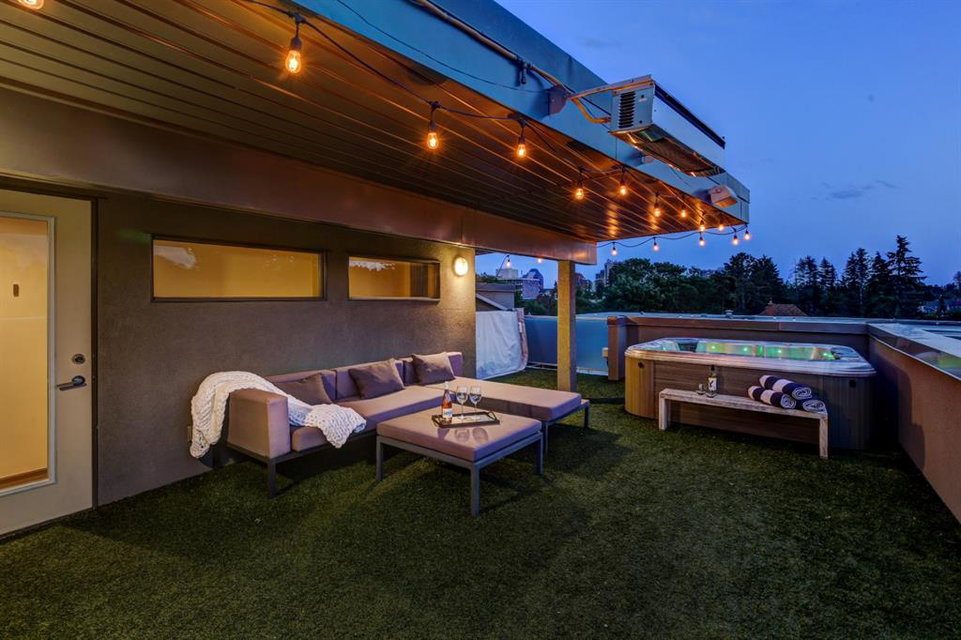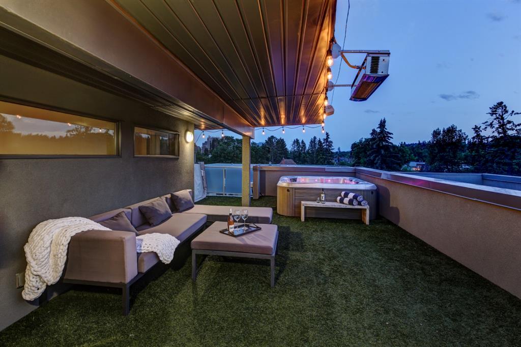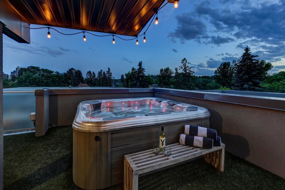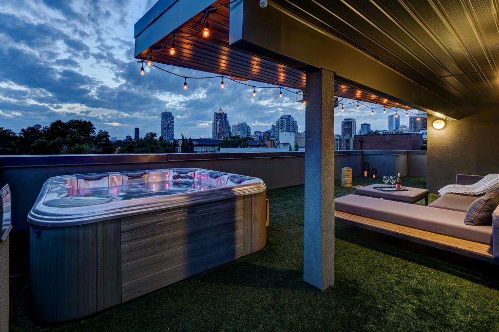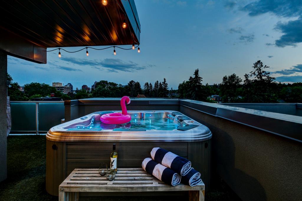Welcome to the perfect inner-city retreat! You have found that “special place” to call home! This quiet location on a treed street just steps to all of the action in Mission & on 17th Ave will give you a peaceful place to live & also be walking distance to work. You’ll love the PRIVATE ROOF-TOP PATIO with hot tub & 270 degree city & mountain views facing South, West & North! The main living floor boasts a wide open floor plan of upscale finishing. Enjoy the small South-facing balcony, spacious dining room, chef’s kitchen with 11’ quartz island, Fisher Paykel built-in appliances & gas cook-top & living room that opens out to a large patio with gas fireplace & BBQ. Upstairs you’ll find a convenient laundry, full main bath, 3rd balcony & 2 bedrooms including a large primary with great walk-in closet & dream ensuite with soaker tub & over-sized glass shower. Imagine having your own private, roof-top oasis with hot tub, tons of room to relax, natural gas heater & outdoor Bluetooth speakers making it perfect for entertaining! Add in an over-sized single attached garage, private driveway & additional permit for street parking so you have room to park 3 vehicles. Features include: 4 outdoor living spaces, central A/C, control the lights, temperature, speakers, front door & garage through your phone & Walk Score of 95! You’ll love living here!!