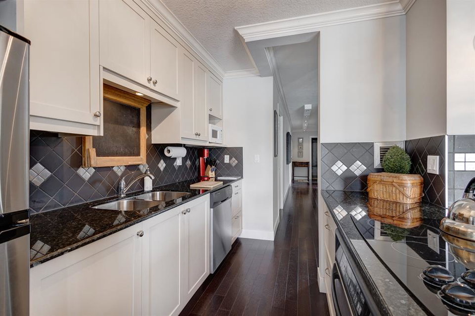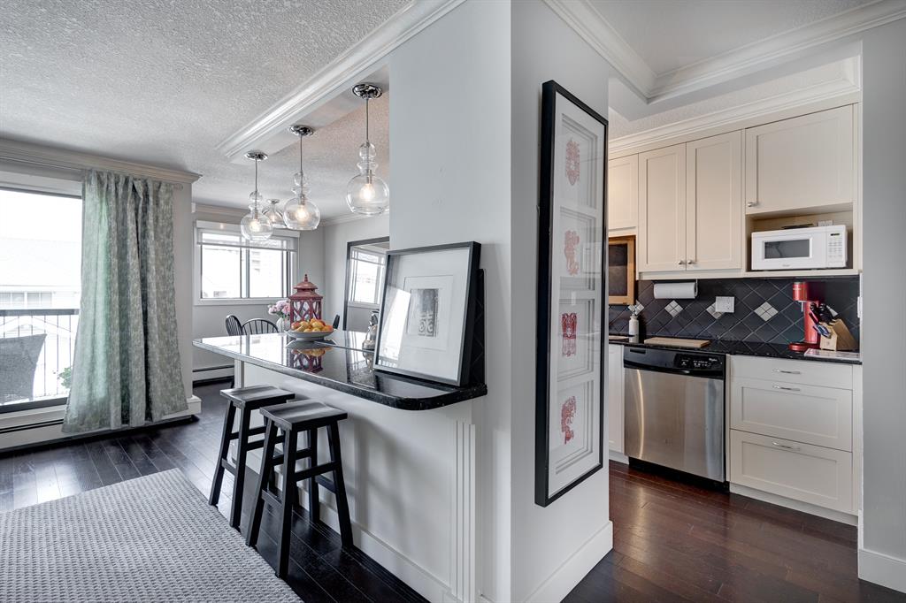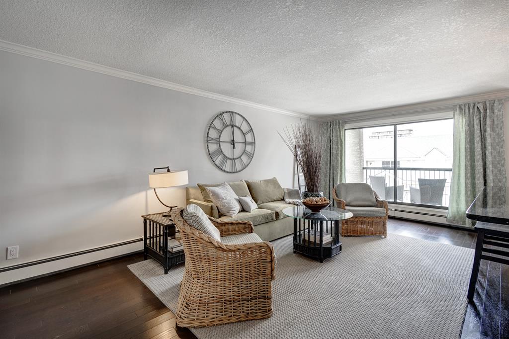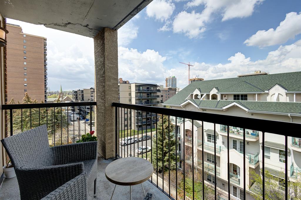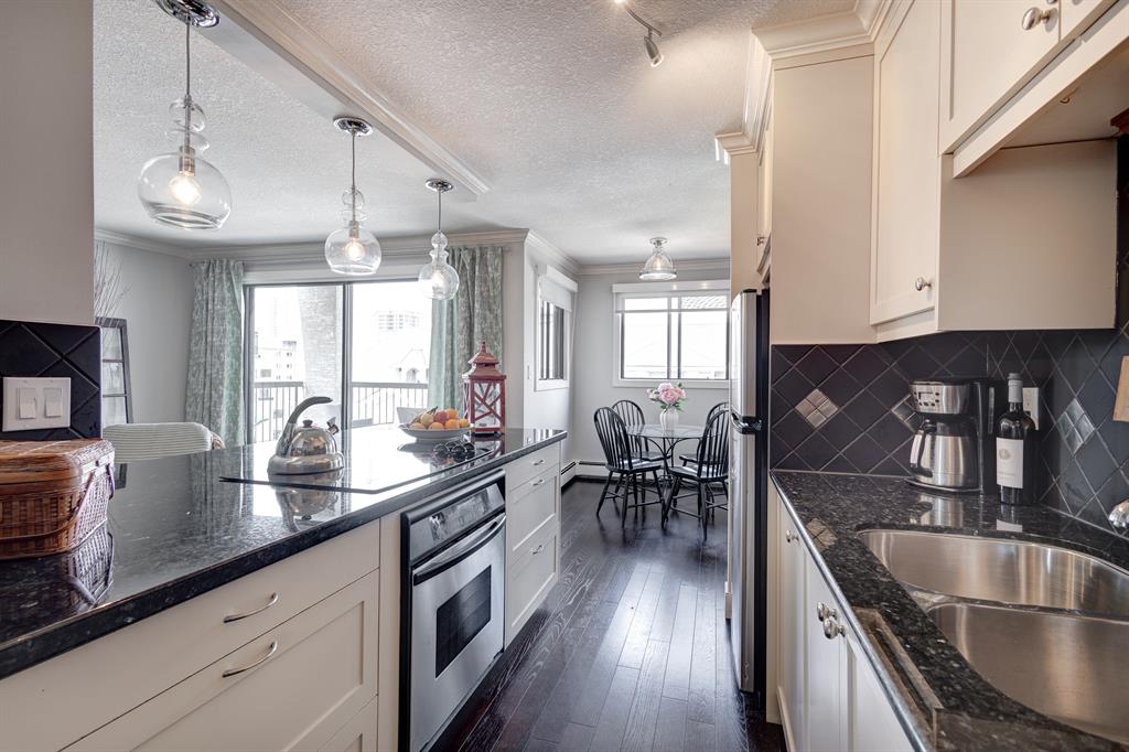 Welcome to this gorgeous, 2 bedroom condo in the popular Beltline area! Located on a quiet & beautiful, tree-lined street just steps to lots of restaurants, shops & night life, this upgraded home boasts a large living room, dinging area, updated kitchen & 2 spacious bedrooms (2nd bedroom has double French doors so easy to use as an office/ family room or guest room). Imagine relaxing on your great NW facing balcony with an open view away from other high rise buildings & you can enjoy the downtown lights! Upgrades include: newer, opened kitchen with cream cabinets, granite counters, tile backsplash & new lights, brand new cooktop & wall oven (May 15/23), new washer, dryer & dishwasher, updated bath with new taps, tub & surround, sink & vanity, engineered hardwood, retextured ceilings, blinds & more! The building has a new roof (2022) & new elevator (2013). Titled, underground parking stall #7 & assigned storage locker #27. You will love living here!!