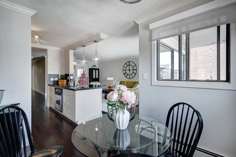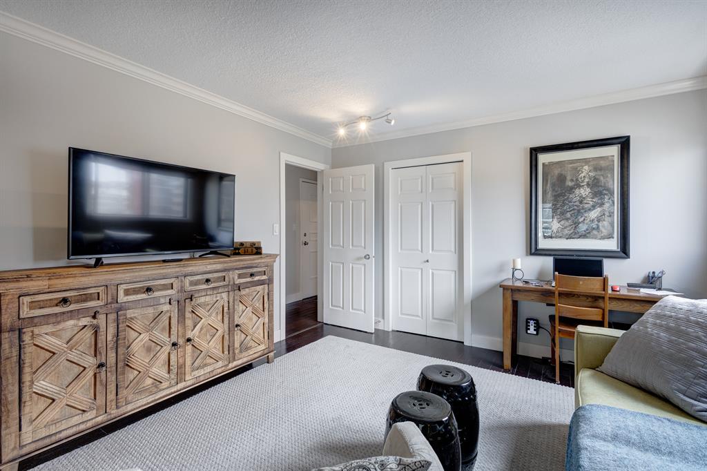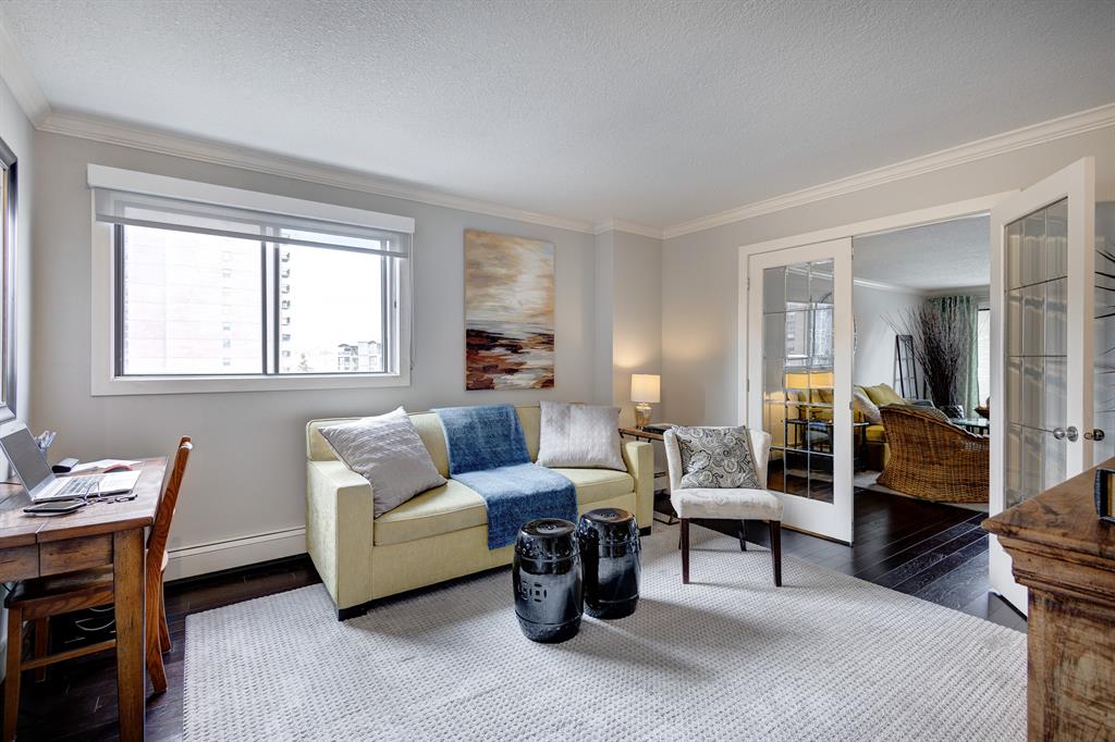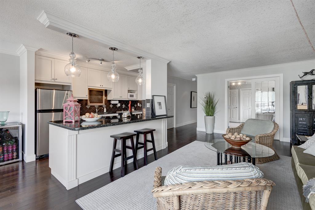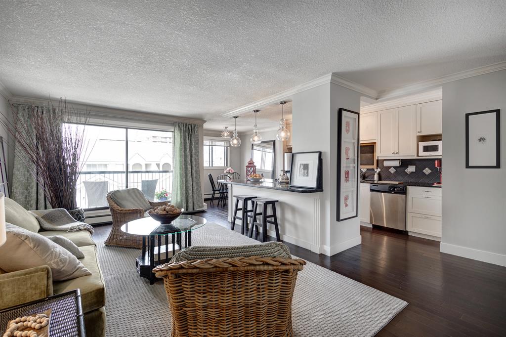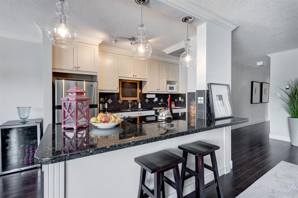 Welcome to this gorgeous, 2 bedroom condo in the popular Beltline area! Located on a quiet & beautiful, tree-lined street just steps to lots of restaurants, shops & night life, this upgraded home boasts a large living room, dinging area, updated kitchen & 2 spacious bedrooms (2nd bedroom has double French doors so easy to use as an office/ family room or guest room). Imagine relaxing on your great NW facing balcony with an open view away from other high rise buildings & you can enjoy the downtown lights! Upgrades include: newer, opened kitchen with cream cabinets, granite counters, tile backsplash & new lights, brand new cooktop & wall oven (May 15/23), new washer, dryer & dishwasher, updated bath with new taps, tub & surround, sink & vanity, engineered hardwood, retextured ceilings, blinds & more! The building has a new roof (2022) & new elevator (2013). Titled, underground parking stall #7 & assigned storage locker #27. You will love living here!!
