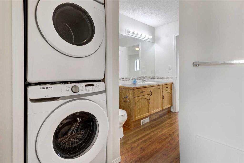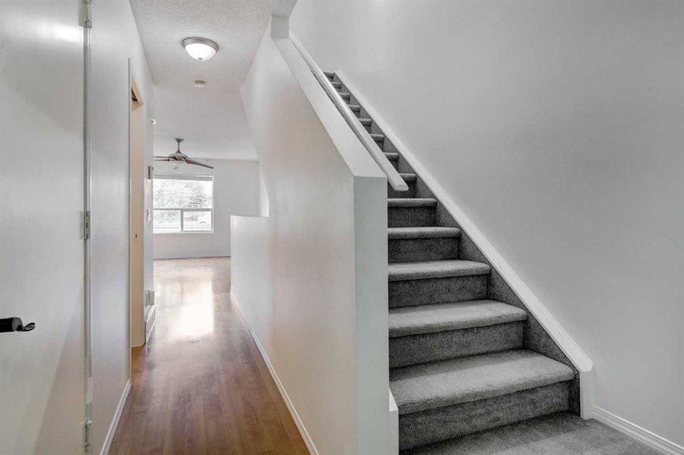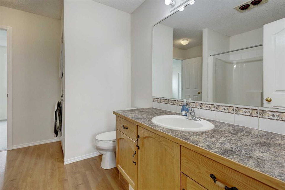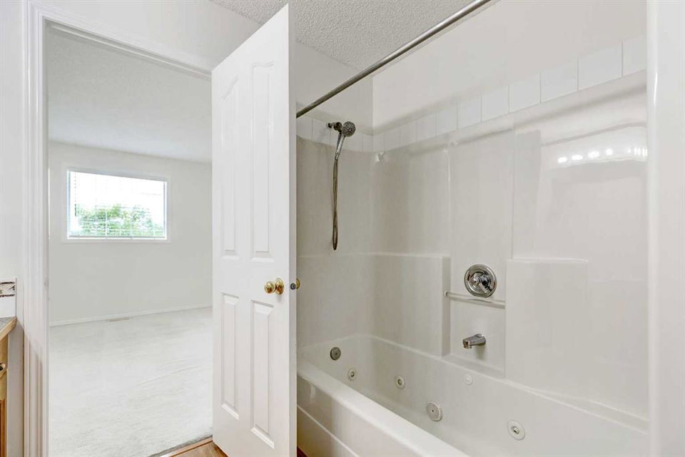 Welcome home to this bright & open, fully developed townhome in popular Douglas Glen! Morning sun streams in through your large East-facing back windows. Enjoy that sun on the deck in your sunny, back green space! The main floor features large living & dining room spaces, powder room & a u-shaped kitchen with black/stainless steel appliances & lots of cabinets & counter space. Upstairs, this dual master plan has 2 spacious bedrooms, great open den/bonus room area, upper laundry & a Jack & Jill ensuite bath. The second bedroom could easily be turned into 2 smaller bedrooms. The fully finished basement has a huge family room, full bath, open space perfect for a den or toy/craft area & a second set of laundry hook-ups. Recent upgrades: full interior paint, new washer/dryer, hot water tank, water softener, some faucets & more! Boasting a single attached garage & driveway, you’ll have room to park both cars. No homes behind you & you are just steps to all amenities – shopping, coffee shops, restaurants, pub, etc. Close to YMCA, schools, Quarry Park, transit, parks, walking paths along the Bow River & so much more! You’ll love living here!!!