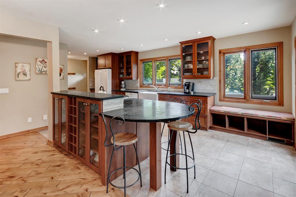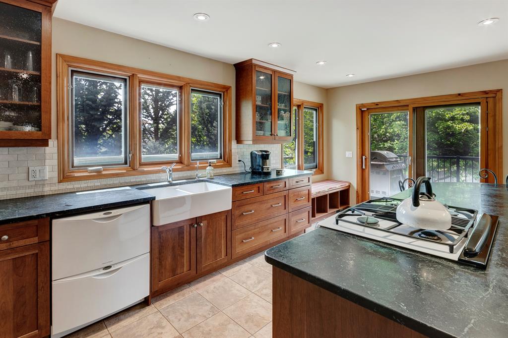 Welcome home!! This renovated bungalow, in desirable Collingwood, is sure to impress!! Walking in you will be greeted with a spacious foyer and vaulted ceilings. The main level features an open layout, perfect for entertaining and everyday life. The Chefs kitchen boasts soapstone countertops, cherry cabinetry, large pantry, gas stove, a farmhouse style sink and a separate vegetable sink. The master retreat can easily fit a king sized bed and is complete with 3 piece ensuite and a walk-in closet! In the walk-out basement you will find 2 more bedrooms, 2 bathrooms and a large Rec room! You’ll want to curl up this winter next to this very special wood stove. Imported from Finland is the beautiful and functional Scandinavian Fireplace that is an exceptional heating source during the winter months and radiates heat through the entire home. It even has a pizza/bread oven!!! last but not least is the West facing backyard!! You can enjoy the well appointed patio this summer! Amazing location near Nose Hill Park, Confederation Park, The Calgary Winter Club, schools, shopping, public transportation, LRT, The University of Calgary, Foothills & Children’s Hospitals, and downtown Calgary is just minutes away!!!