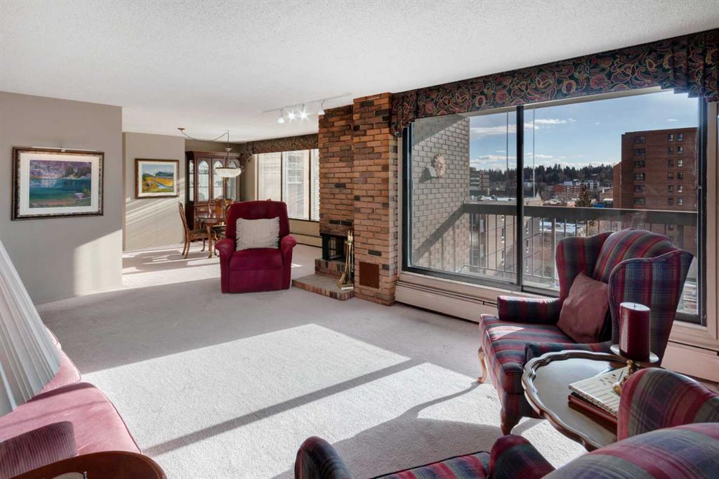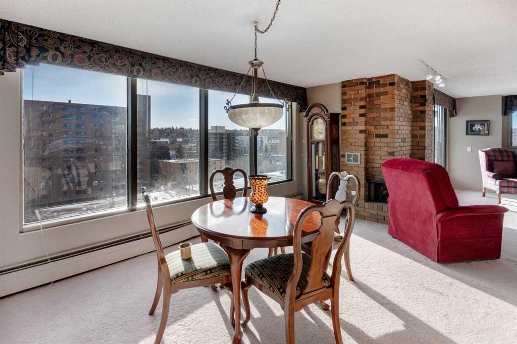 Discover the charm of this spacious 2-bedroom condo perfectly situated in the vibrant heart of the Beltline. Positioned in the sought-after SW corner, this residence is bathed in natural light, creating a warm & welcoming atmosphere throughout. The kitchen boasts a practical pass-through, an abundance of cabinets & drawers, a convenient pantry, & a stylish glass backsplash. Cooking & entertaining become a delight in this well-appointed space. The living room is an inviting haven with ample natural light streaming through large windows, accentuating the comfort of a wood-burning fireplace. The generously sized primary bedroom offers a retreat with a substantial walk-in closet, complemented by a second spacious bedroom, providing flexibility for various needs. You’ll love the convenient, in-suite laundry/storage room. Step outside & indulge in the outdoors on the SW exposure wrap-around balcony, perfect for relaxation & enjoying the cityscape. Updates to the unit include newer paint, a renovated bathroom, & a modern glass backsplash in the kitchen, ensuring a contemporary & stylish living environment. Enhancing the lifestyle, there are only 4 units per floor & the building offers desirable amenities such as underground parking, a fitness room, sauna, party/billiard room, & a rooftop patio, providing opportunities for recreation & socializing. Nestled in the lively Beltline area, this unit is strategically located near restaurants, coffee shops, shopping, & more, making it a highly desirable & convenient place to call home. Don’t miss the chance to elevate your living experience in this practical yet comfortable residence.
