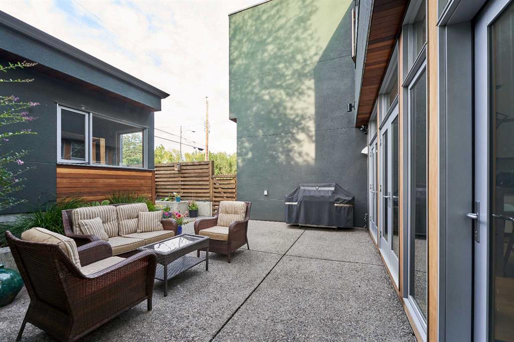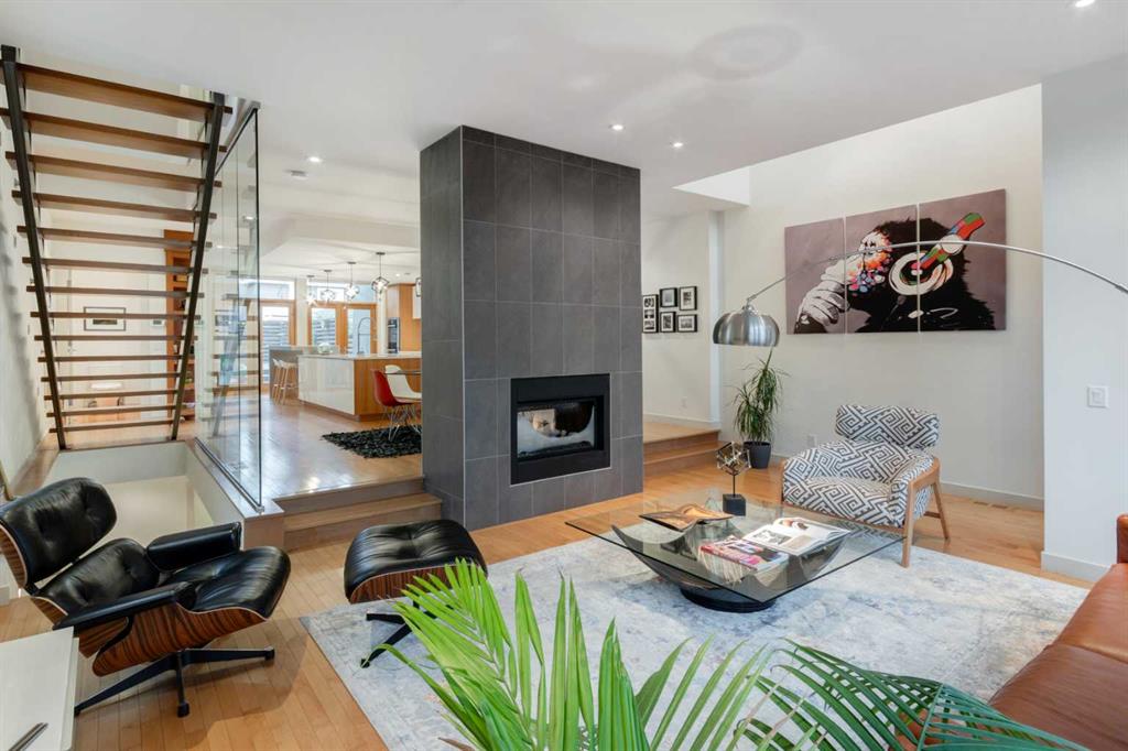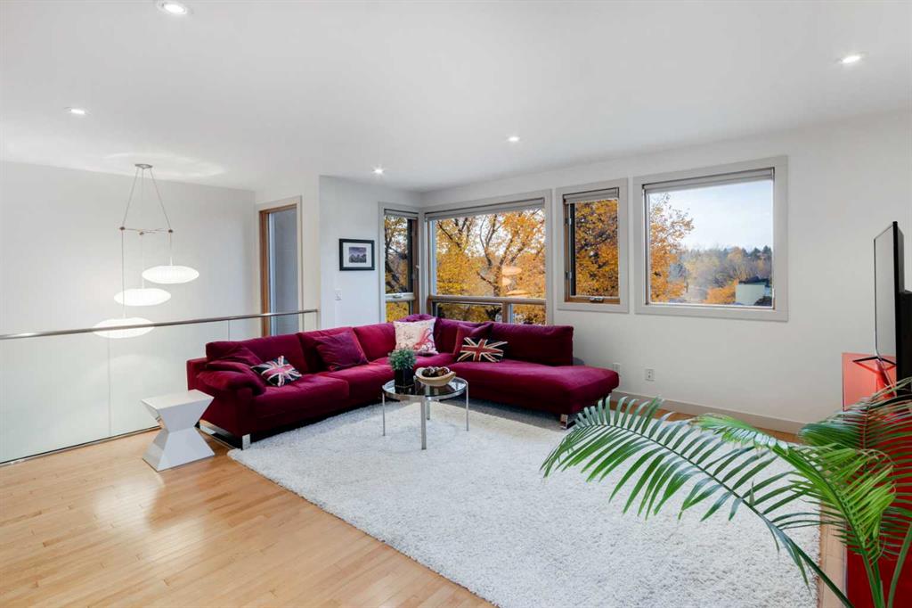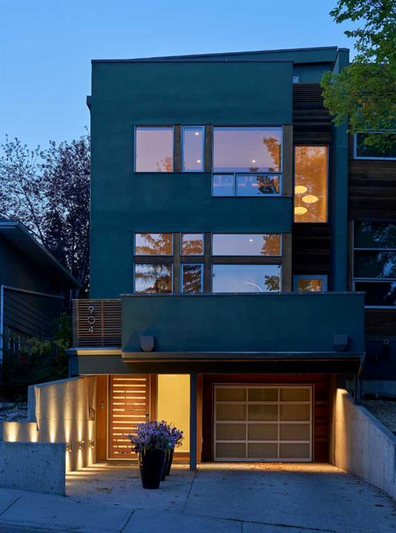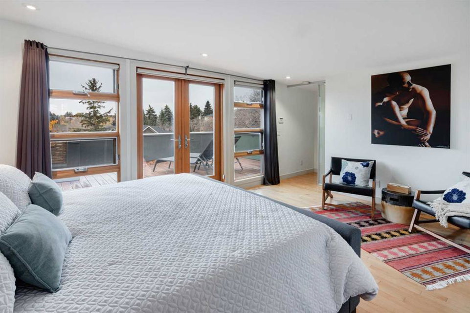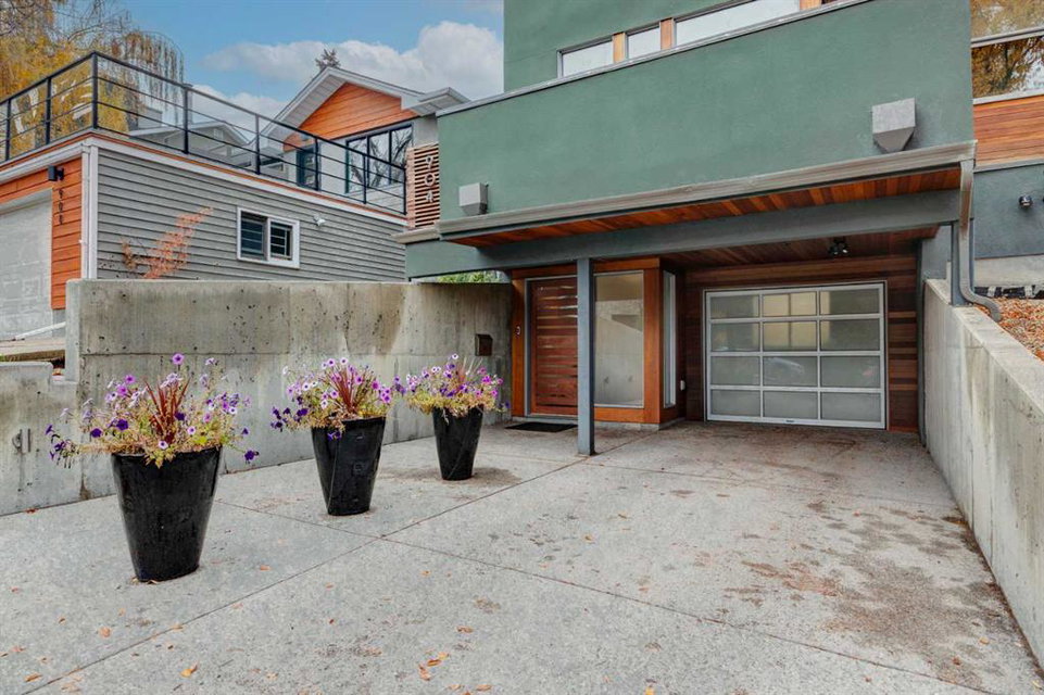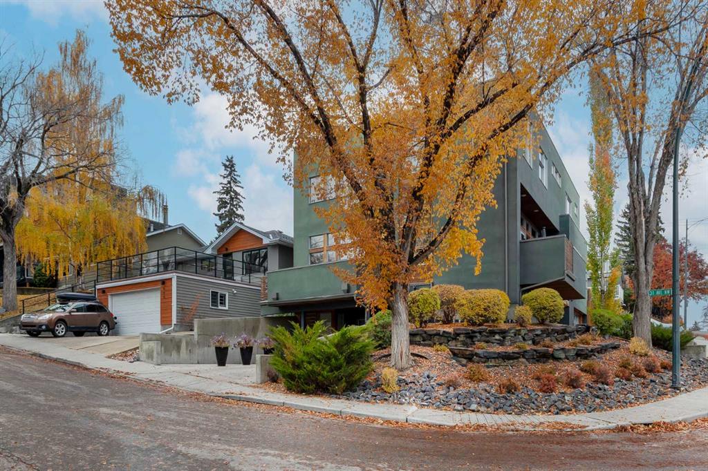 Embrace West Coast modern urban living in this stunning 3-bedroom home situated in the peaceful Cambrian Heights neighborhood, overlooking the picturesque Confederation Park. This residence features abundant natural light, a spacious layout, and awe-inspiring downtown skyline views, epitomizing a blend of elegance, practicality, and an unbeatable location. Upon entry into the reverse walkout, you’ll encounter ample natural light, a roomy foyer, a convenient powder room, and a flexible office / gym / hobby space that can be easily transformed back into an attached garage. The main level unveils a chef’s dream kitchen with a massive island, white quartz countertops, white hi-gloss cabinets, and top-notch Bosch appliances. The expansive stainless steel raised eating bar creates an ideal space for relaxed dining and entertaining. The two-sided fireplace adds a cozy touch to the expansive living and dining areas, which open to a south-facing deck featuring a gas hookup for outdoor meals. Take the open-riser staircase with glass side walls up to the second floor and discover two generously sized bedrooms, a well-appointed bathroom, laundry room, and a family room that serves as an ideal space for gatherings, relaxation, or a home office. Ascend to the third floor, where the master bedroom awaits, complete with a private south-facing balcony allowing you to bask in the sun’s rays or enjoy a nightcap while gazing at the stars and downtown skyline. The spa-like ensuite includes a jetted tub, a separate shower, and dual vanities for a tranquil retreat. This residence offers notable features, such as extensive custom millwork, wired ethernet throughout, California Closets, security cameras, high-end plumbing fixtures, a medical-grade air cleaner, and heated flooring in the basement and office, excluding mechanical room. A concrete rear courtyard with a gas hookup enhances the outdoor living experience. Parking is effortless with a detached garage and a covered carport. This home is located next to Confederation Park, complete with playground, walking/bike paths, duck pond, tennis & pickleball courts, playing fields and cross-country skiing. Off-leash dog park is located one block away. Boasting a sleek design and thoughtful spaces, this home offers a unique and unparalleled living experience. Don’t miss the opportunity to make this meticulously designed property your forever home. Contact us today to arrange a viewing and immerse yourself in luxury within an urban setting