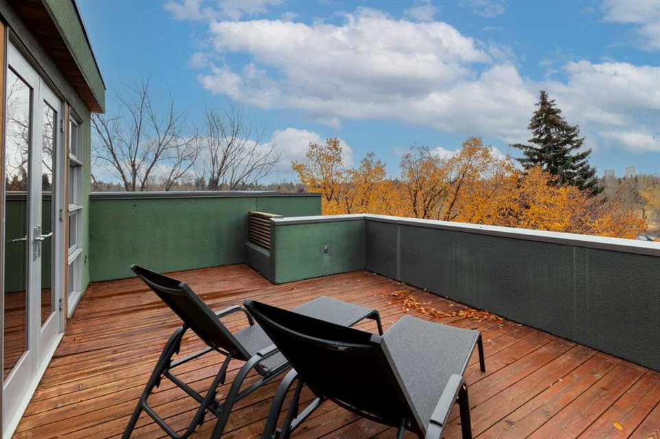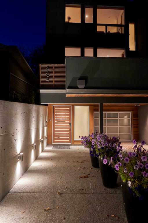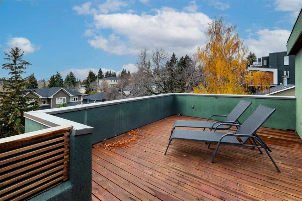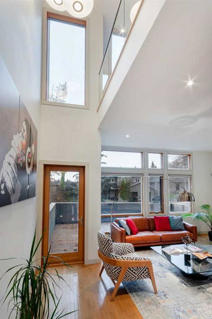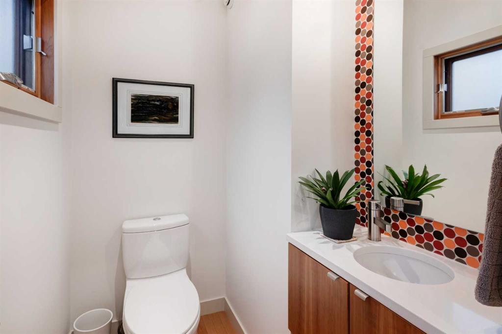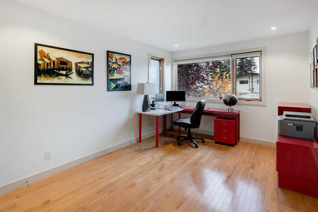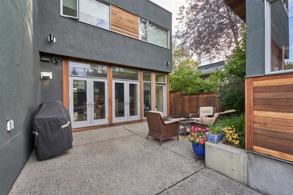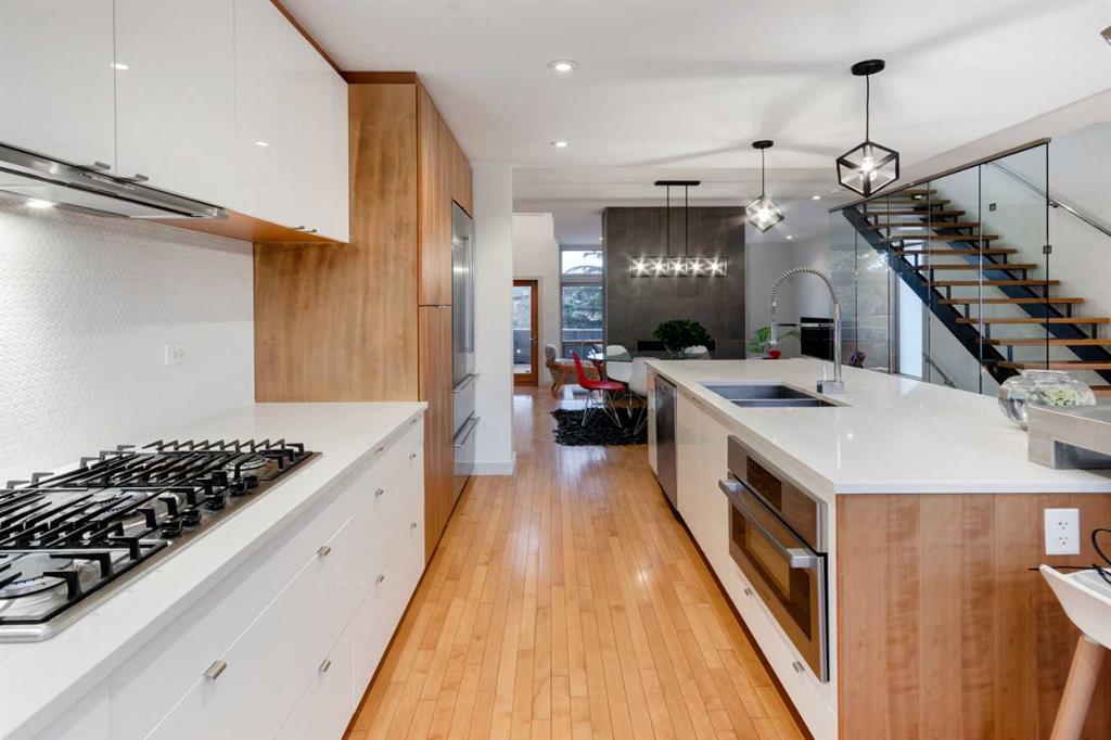 Embrace West Coast modern urban living in this stunning 3-bedroom home situated in the peaceful Cambrian Heights neighborhood, overlooking the picturesque Confederation Park. This residence features abundant natural light, a spacious layout, and awe-inspiring downtown skyline views, epitomizing a blend of elegance, practicality, and an unbeatable location. Upon entry into the reverse walkout, you’ll encounter ample natural light, a roomy foyer, a convenient powder room, and a flexible office / gym / hobby space that can be easily transformed back into an attached garage. The main level unveils a chef’s dream kitchen with a massive island, white quartz countertops, white hi-gloss cabinets, and top-notch Bosch appliances. The expansive stainless steel raised eating bar creates an ideal space for relaxed dining and entertaining. The two-sided fireplace adds a cozy touch to the expansive living and dining areas, which open to a south-facing deck featuring a gas hookup for outdoor meals. Take the open-riser staircase with glass side walls up to the second floor and discover two generously sized bedrooms, a well-appointed bathroom, laundry room, and a family room that serves as an ideal space for gatherings, relaxation, or a home office. Ascend to the third floor, where the master bedroom awaits, complete with a private south-facing balcony allowing you to bask in the sun’s rays or enjoy a nightcap while gazing at the stars and downtown skyline. The spa-like ensuite includes a jetted tub, a separate shower, and dual vanities for a tranquil retreat. This residence offers notable features, such as extensive custom millwork, wired ethernet throughout, California Closets, security cameras, high-end plumbing fixtures, a medical-grade air cleaner, and heated flooring in the basement and office, excluding mechanical room. A concrete rear courtyard with a gas hookup enhances the outdoor living experience. Parking is effortless with a detached garage and a covered carport. This home is located next to Confederation Park, complete with playground, walking/bike paths, duck pond, tennis & pickleball courts, playing fields and cross-country skiing. Off-leash dog park is located one block away. Boasting a sleek design and thoughtful spaces, this home offers a unique and unparalleled living experience. Don’t miss the opportunity to make this meticulously designed property your forever home. Contact us today to arrange a viewing and immerse yourself in luxury within an urban setting
