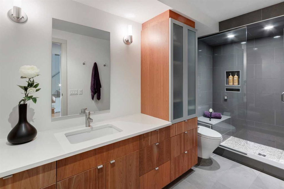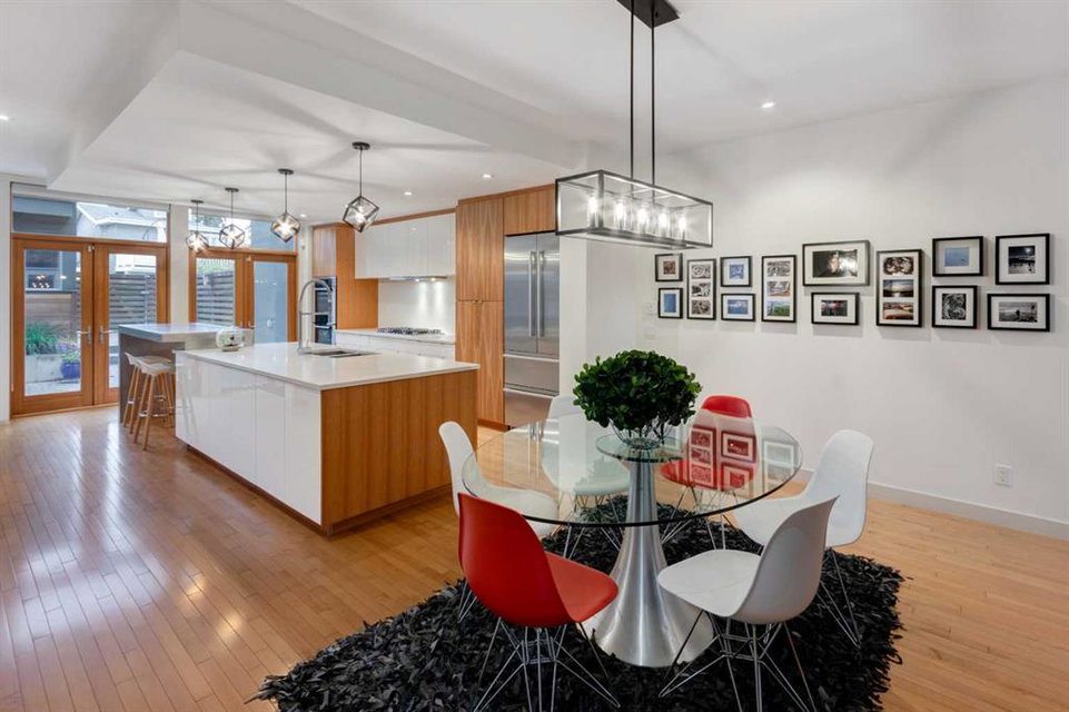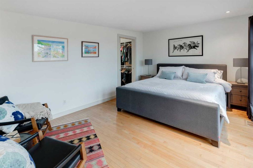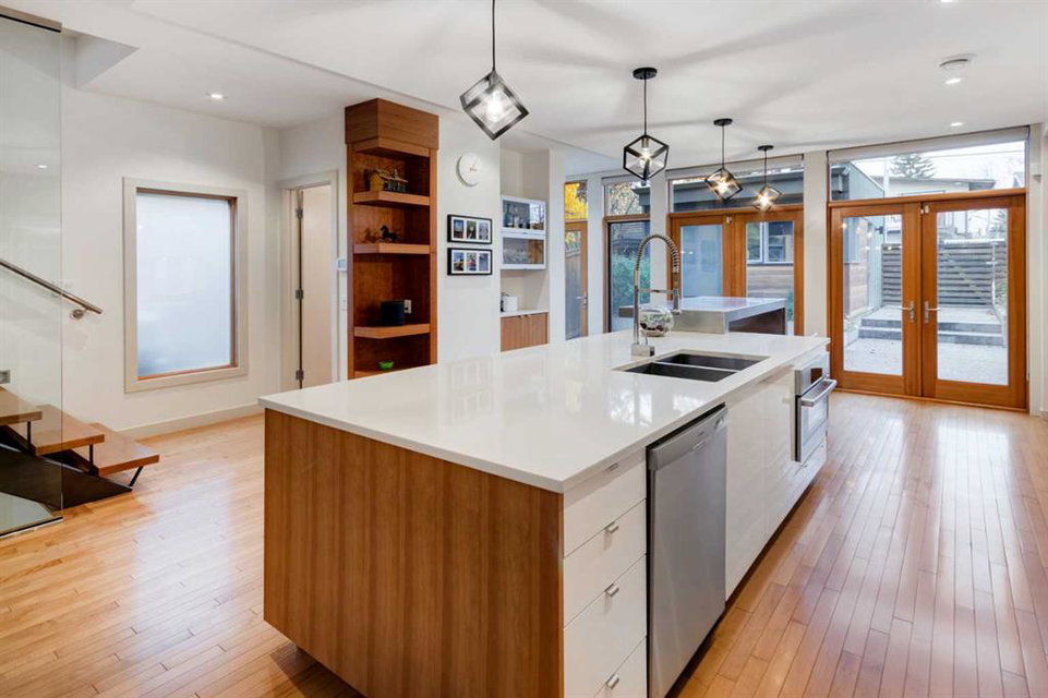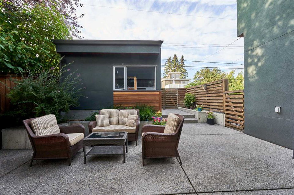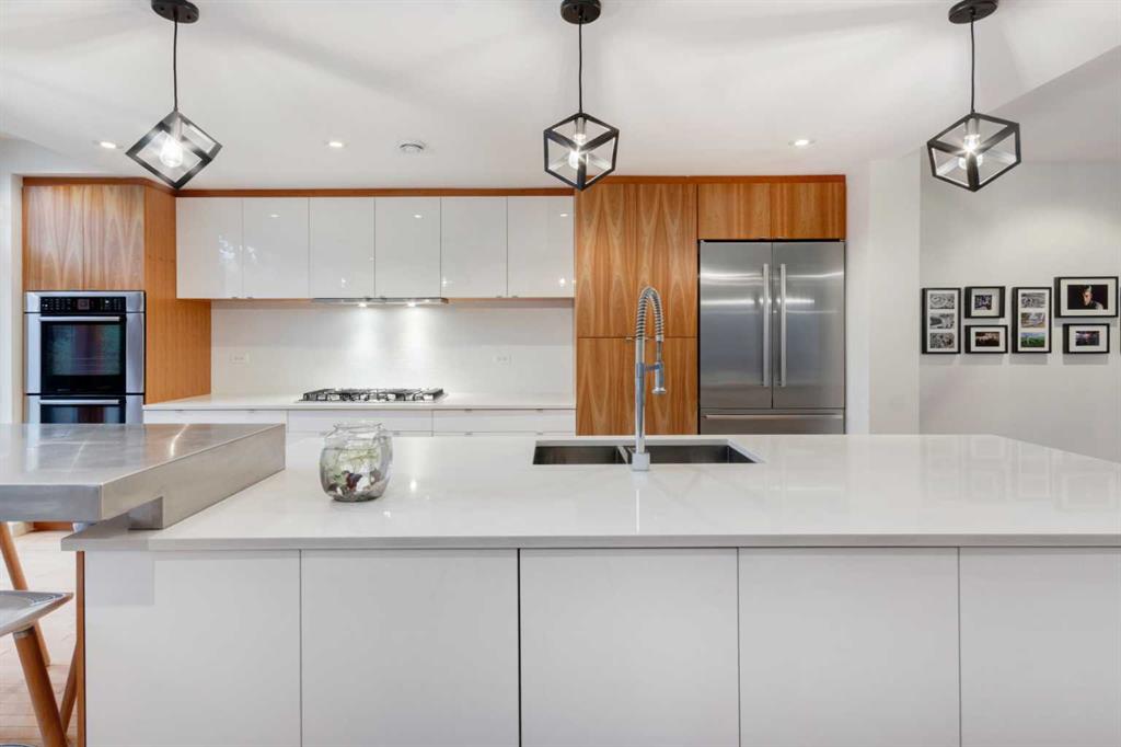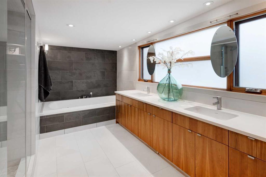 Embrace West Coast modern urban living in this stunning 3-bedroom home situated in the peaceful Cambrian Heights neighborhood, overlooking the picturesque Confederation Park. This residence features abundant natural light, a spacious layout, and awe-inspiring downtown skyline views, epitomizing a blend of elegance, practicality, and an unbeatable location. Upon entry into the reverse walkout, you’ll encounter ample natural light, a roomy foyer, a convenient powder room, and a flexible office / gym / hobby space that can be easily transformed back into an attached garage. The main level unveils a chef’s dream kitchen with a massive island, white quartz countertops, white hi-gloss cabinets, and top-notch Bosch appliances. The expansive stainless steel raised eating bar creates an ideal space for relaxed dining and entertaining. The two-sided fireplace adds a cozy touch to the expansive living and dining areas, which open to a south-facing deck featuring a gas hookup for outdoor meals. Take the open-riser staircase with glass side walls up to the second floor and discover two generously sized bedrooms, a well-appointed bathroom, laundry room, and a family room that serves as an ideal space for gatherings, relaxation, or a home office. Ascend to the third floor, where the master bedroom awaits, complete with a private south-facing balcony allowing you to bask in the sun’s rays or enjoy a nightcap while gazing at the stars and downtown skyline. The spa-like ensuite includes a jetted tub, a separate shower, and dual vanities for a tranquil retreat. This residence offers notable features, such as extensive custom millwork, wired ethernet throughout, California Closets, security cameras, high-end plumbing fixtures, a medical-grade air cleaner, and heated flooring in the basement and office, excluding mechanical room. A concrete rear courtyard with a gas hookup enhances the outdoor living experience. Parking is effortless with a detached garage and a covered carport. This home is located next to Confederation Park, complete with playground, walking/bike paths, duck pond, tennis & pickleball courts, playing fields and cross-country skiing. Off-leash dog park is located one block away. Boasting a sleek design and thoughtful spaces, this home offers a unique and unparalleled living experience. Don’t miss the opportunity to make this meticulously designed property your forever home. Contact us today to arrange a viewing and immerse yourself in luxury within an urban setting